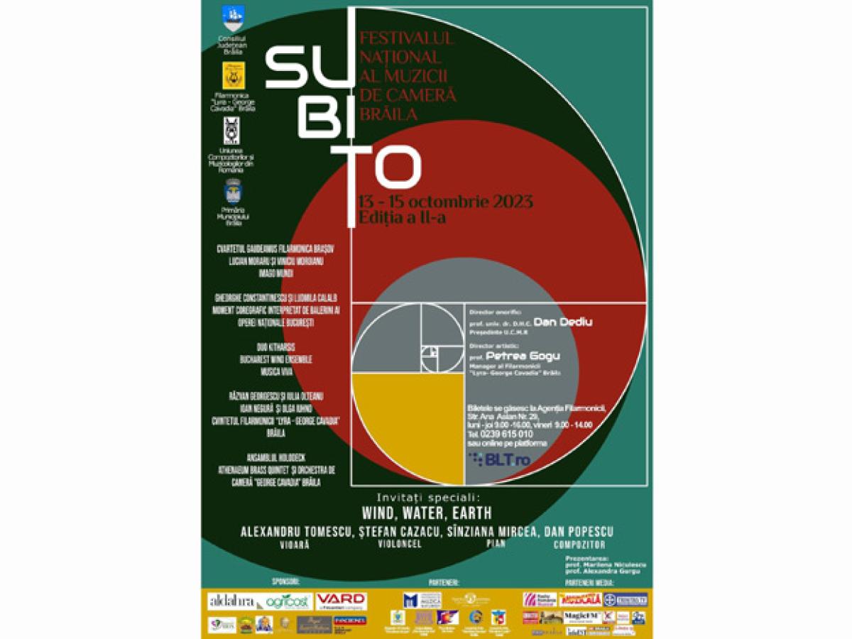 Cea de-a II-a ediție a Festivalului Național de Muzică de Cameră SUBITO, organizat de Filarmonica „Lyra-George Cavadia” Brăila, alături de Consiliul Județean, Primăria Municipiului Brăila și Uniunea Compozitorilor și Muzicologilor din România, în perioada 13-15 octombrie 2023 - eveniment care și-a pus amprenta asupra vieții culturale brăilene și naționale deopotrivă - reunește nume consacrate ale genului pe care continuăm să vi le prezentăm în paginile „Obiectiv - Vocea Brăilei” și pe care le veți putea urmări evoluând pe scenă în cele trei zile de festival cameral.