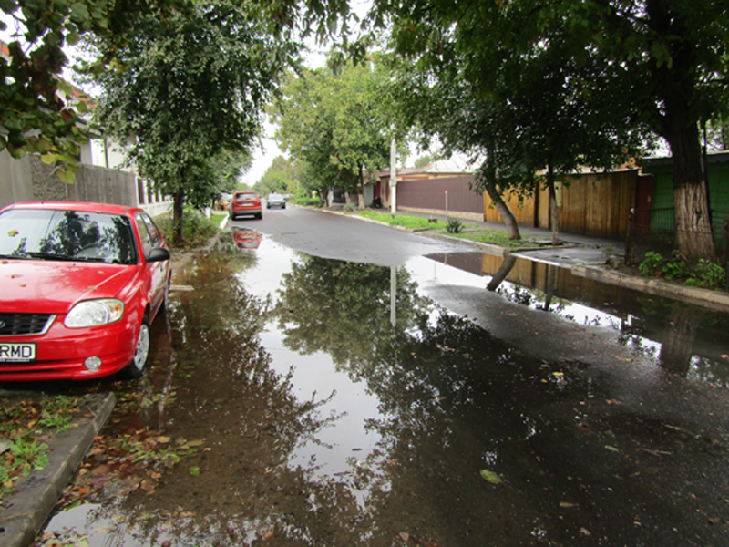 • este problema cu care se confruntă locatarii străzilor Bujorului și Fagului din cartierul Vidin • străzile în cauză au fost asfaltate recent, însă pe carosabilul abia modernizat apa băltește după fiecare ploaie, mai ales în intersecții • oamenii spun că le-au spus celor responsabili cu lucrarea că ar trebui montate mai multe guri de scurgere pentru preluarea apelor pluviale, dar că nu au fost ascultați