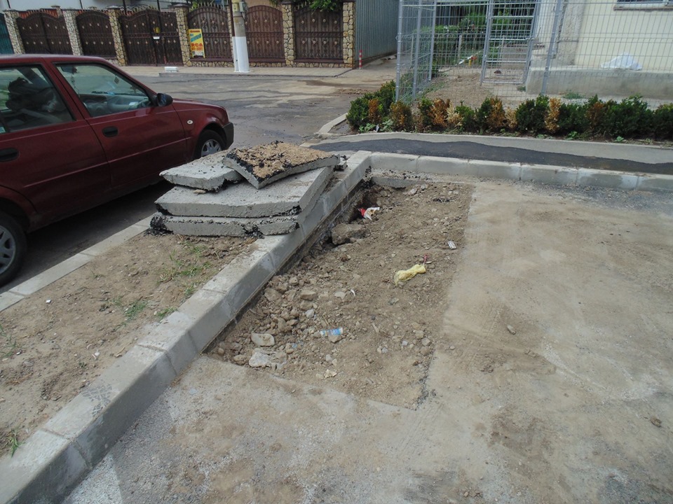 * parcarea din spatele Școlii Gimnaziale nr. 18 "Mihu Dragomir" Brăila, recent amenajată, a fost "feliată" de un utilaj al companiei de apă