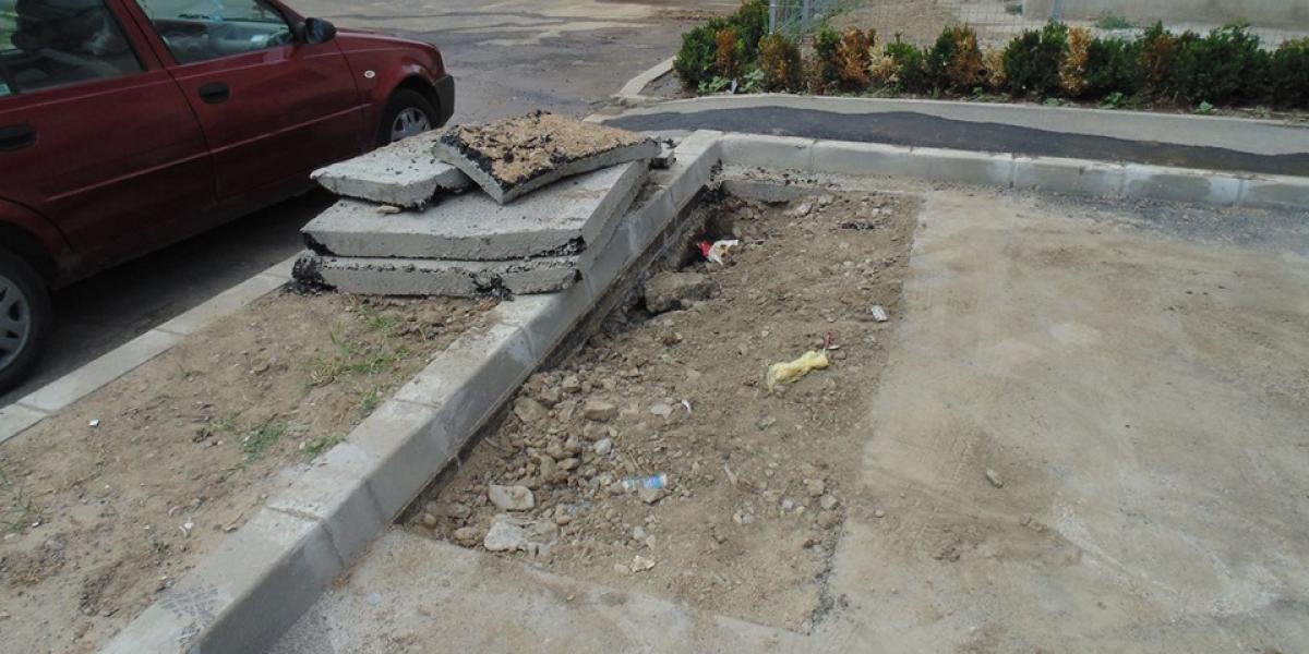 Parcare nou-amenajată de municipalitate, stricată de angajații Companiei de Utilități "Dunărea" Brăila SA. Asta reiese dintr-o sesizare trimisă pe adresa redacției "Obiectiv-Vocea Brăilei" de către un cititor care locuiește în zona Școlii Gimnaziale nr. 18 "Mihu Dragomir" și care, indignat de lucrările la care asista neputincios, de la balconul apartamentului, ne-a trimis și fotografii cât se poate de relevante. Ieri, groapa săpată de angajații companiei de apă fusese astupată, dar parcarea era, în continuare, afectată de lucrările făcute de angajații CUP "Dunărea".