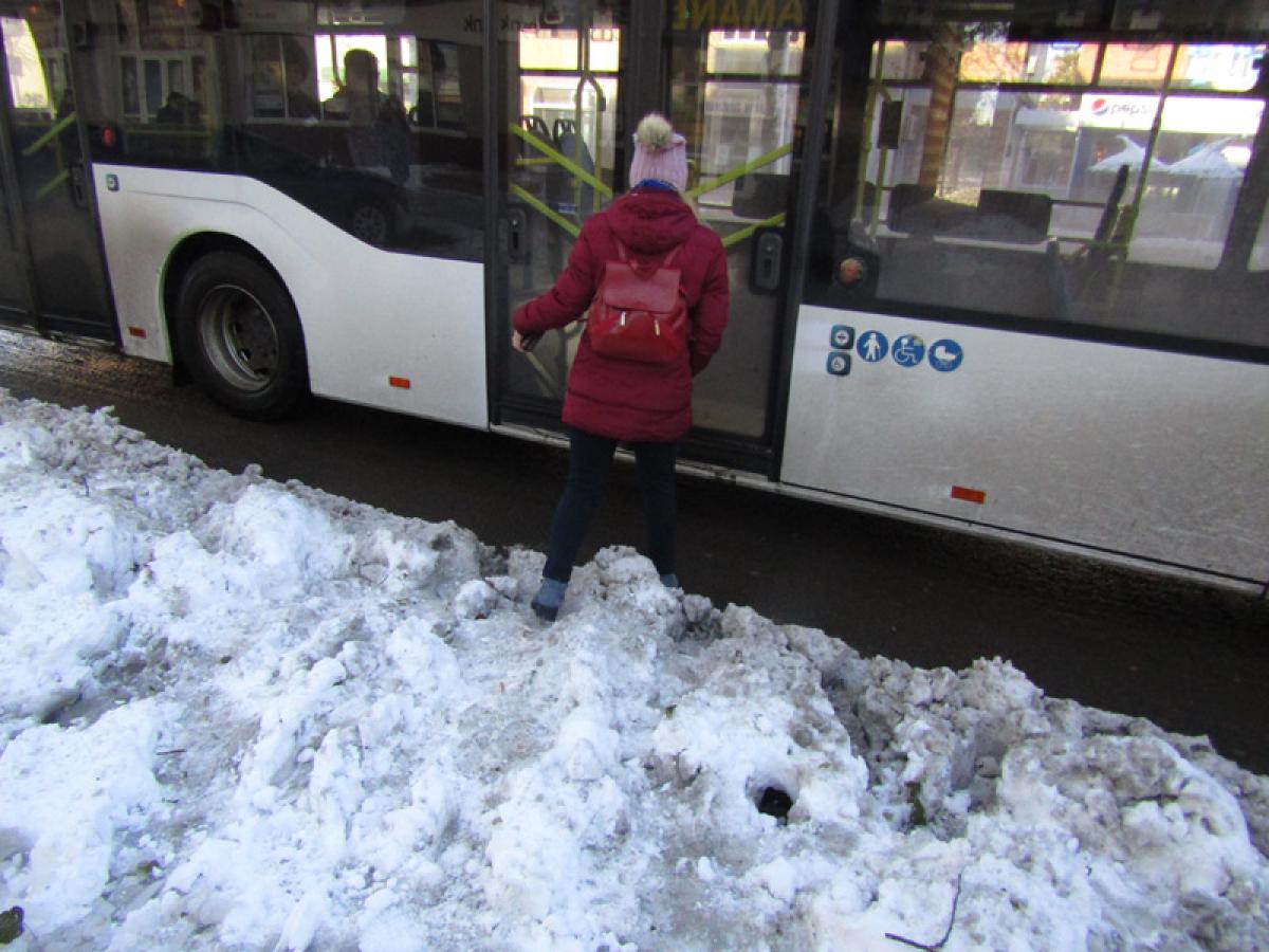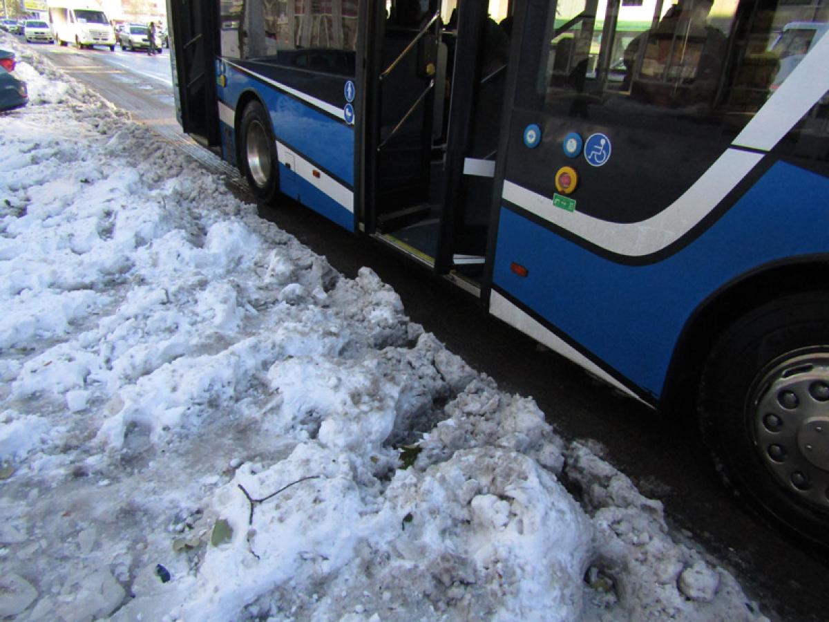 În stații, unde de regulă vin simultan două și chiar trei-patru autobuze, alte obstacole: bălțile de la bordură, deci musai treci prin ele spre a urca în autobuz sau, la al doilea autobuz, trebuie să escaladezi mormanele de zăpadă. Asta, deoarece, potrivit proverbului “noi muncim, nu gândim”, s-a uitat că autobuzele vin în stație în același timp (după “metoda cârnăcior”, cum spun cei de la Braicar).