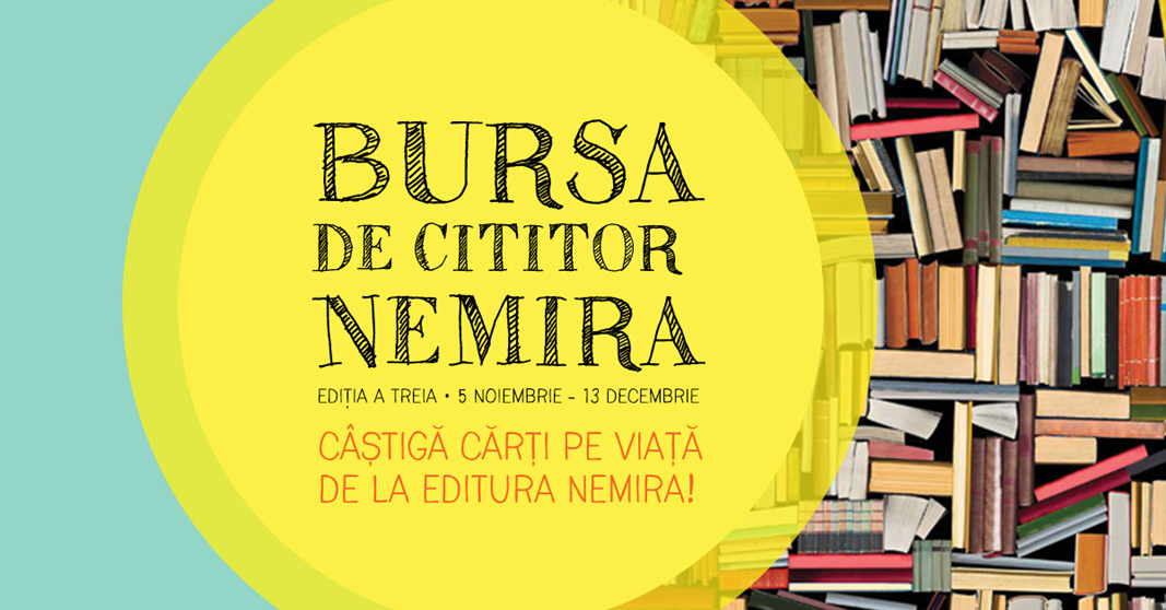 Editura “Nemira” lansează o nouă ediţie a “Bursei de cititor Nemira”, un proiect concurs, care răspunde nevoii sociale de a educa prin lectură, de a promova cultura scrisă şi obişnuinţa de a citi de plăcere. Astfel, prin selecţie, Editura “Nemira” va oferi două burse de cititor elevilor cu vârsta între 12 şi 18 ani, astfel: o bursă la categoria de vârstă 12-14 ani şi o bursă la categoria de vârstă 15-18 ani. Statutul de bursier aduce fiecărui beneficiar cărţi publicate de Editura Nemira pentru tot restul vieţii (colecţiile Armada, Young Adult, Babel, Istoria, Yorick, n’autor, Vorpal).