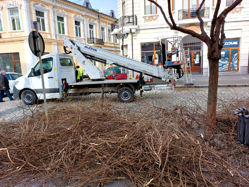 Start pentru toaletarea salcâmilor de pe Strada Mihai Eminescu, operațiune executată, în fiecare an, de regulă primăvara, urmată de aplicarea unui tratament contra dăunătorilor, necesar mai ales în acest început de an când, din pricina iernii deosebit de blânde, ciupercile și insectele s-au înmulțit peste măsură, amenințând micii arbori de pe cea mai veche arteră a orașului.