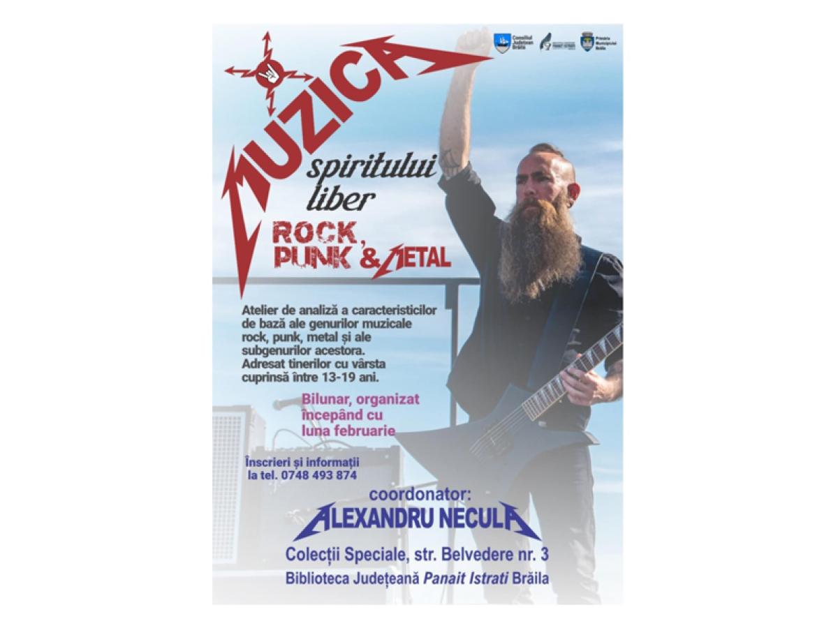 • tinerii pasionați de rock, punk și metal din Brăila se pot înscrie până pe 14 februarie pentru a participa la un eveniment dedicat acestor genuri muzicale, organizat în cadrul Bibliotecii Județene ”Panait Istrati” Brăila • atelierul se află la a doua ediție și va avea loc, bilunar, în perioada februarie – mai • se anunță experiențe interactive și captivante în care participanții vor avea prilejul de a explora, socializa, discuta și înțelege mai bine universul vast și extrem de creativ al acestui segment muzical