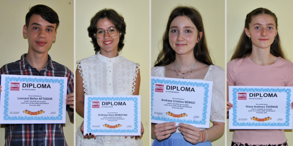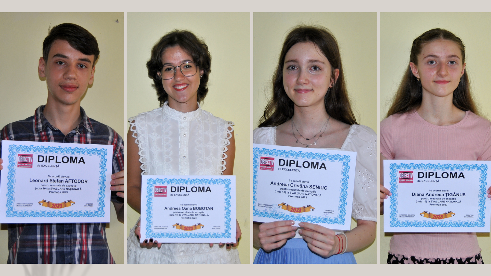 Păstrând tradiția, cotidianul “Obiectiv” i-a premiat pe cei patru elevi care anul acesta au obținut media 10 la examenul de Evaluare Națională la clasa a VIII-a. Aceștia au primit diplome de excelență și câte un premiu de 100 lei.