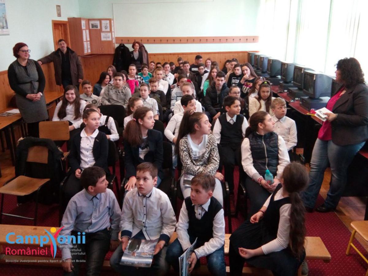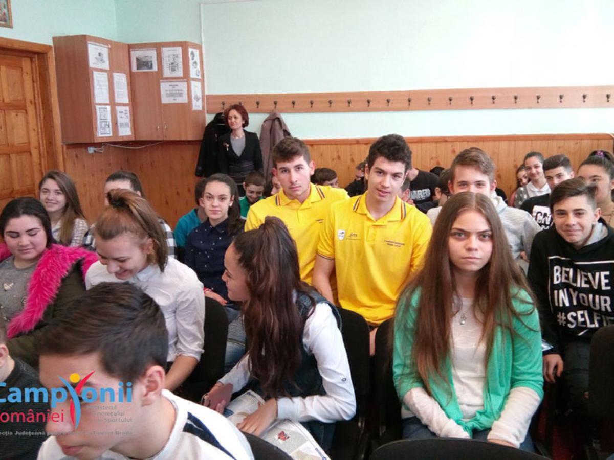 Proiectul “Campionii României în şcoli, licee şi universităţi” a continuat la Brăila cu o întâlnire a elevilor şcolii gimnaziale “Mihail Kogălniceanu” cu antrenoarea emerită de kaiac-canoe Florentina Ion, de la Clubul Sportiv Municipal Brăila. Iar invitaţii de onoare au fost doi dintre campionii naţionali pregătiţi de antrenoarea brăileană, Robert Calaver, fost elev al şcolii “Mihail Kogălniceanu”, şi Ciprian Sârbu.
