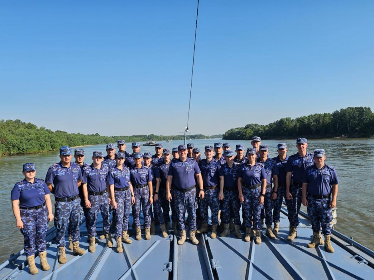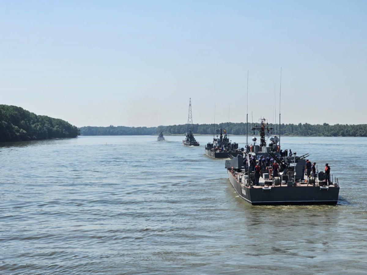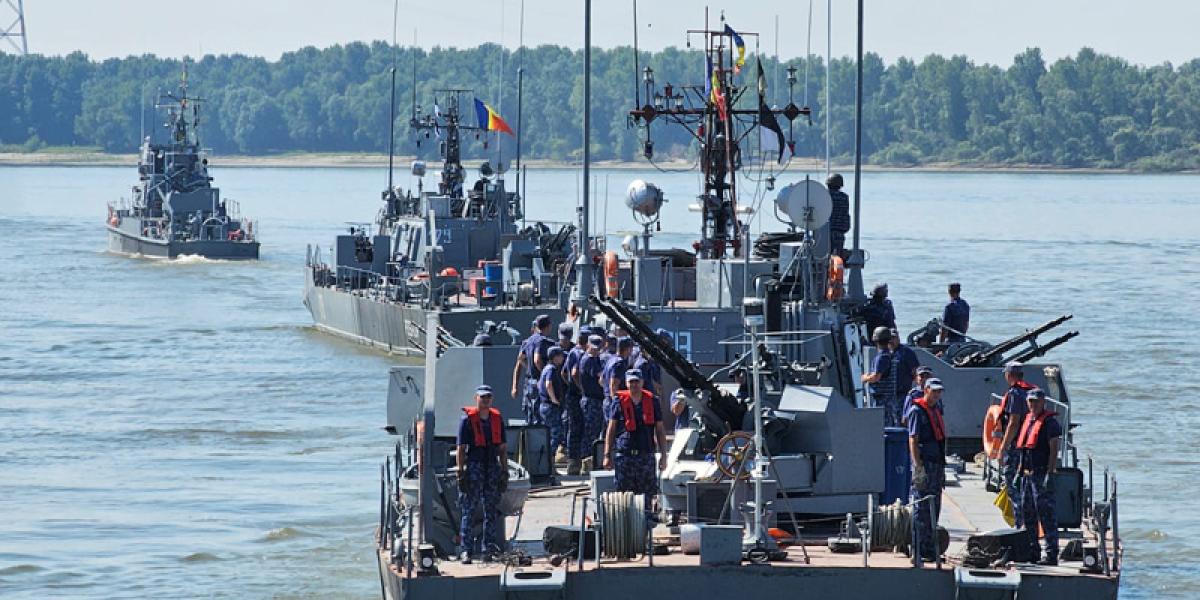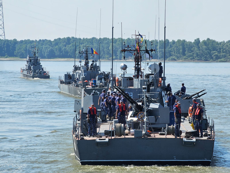 Elevii Școlii Militare de Maiștri Militari a Forțelor Navale, la bordul navelor de luptă aparținând Flotilei Fluviale „Mihail Kogălniceanu”, de la Brăila.