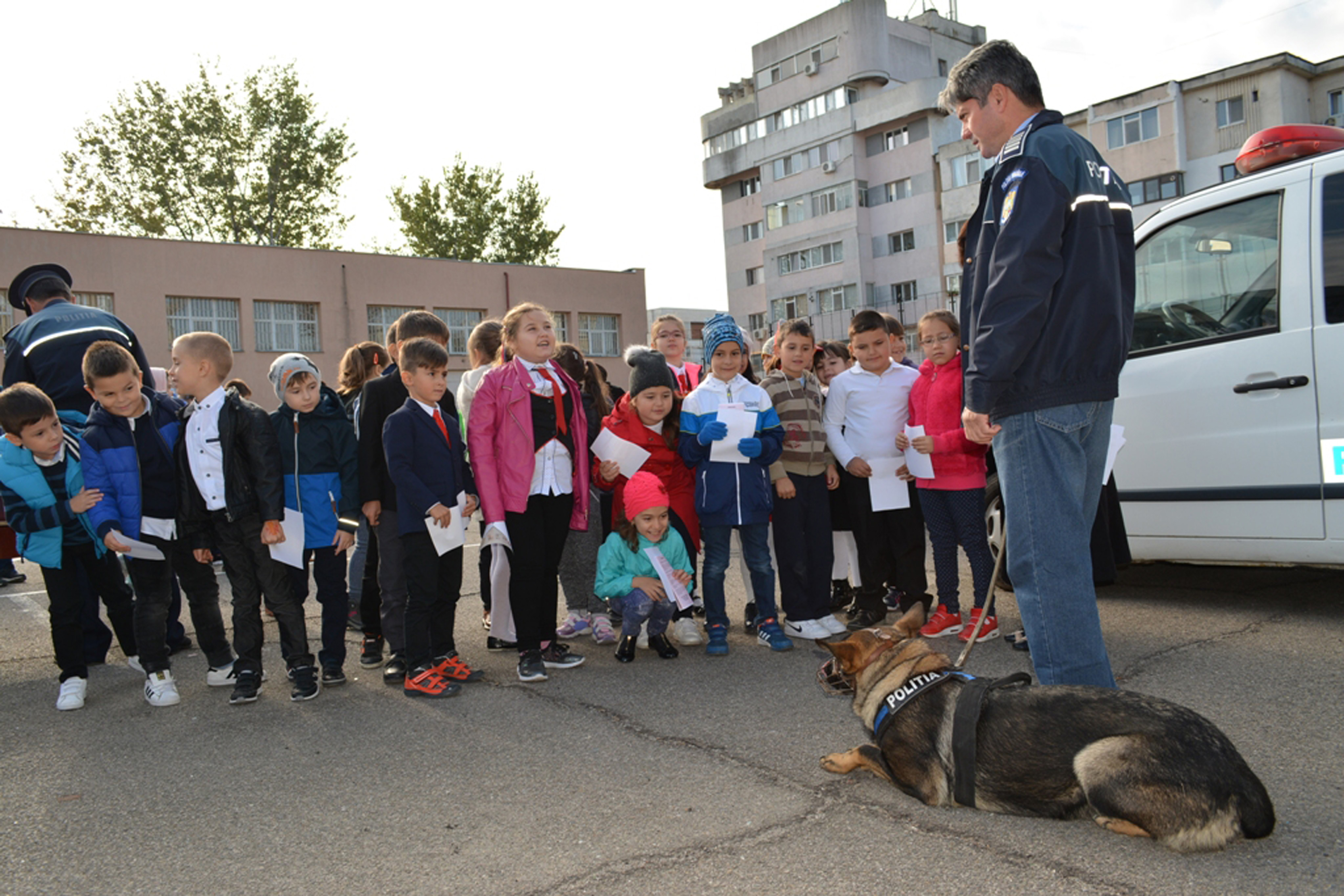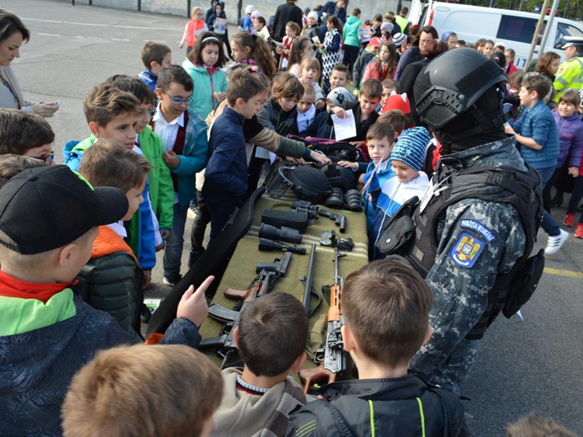 • ieri, copiii de la Şcoala Gimnazială “Fănuş Neagu” au studiat tehnica din dotarea criminaliştilor, luptătorilor de acţiuni speciale şi poliţiştilor rutieri • câinele poliţist “Vera” a prins un infractor • elevii au fost impresionaţi de activităţile prezentate şi mulţi au spus că şi-ar dori să devină poliţişti