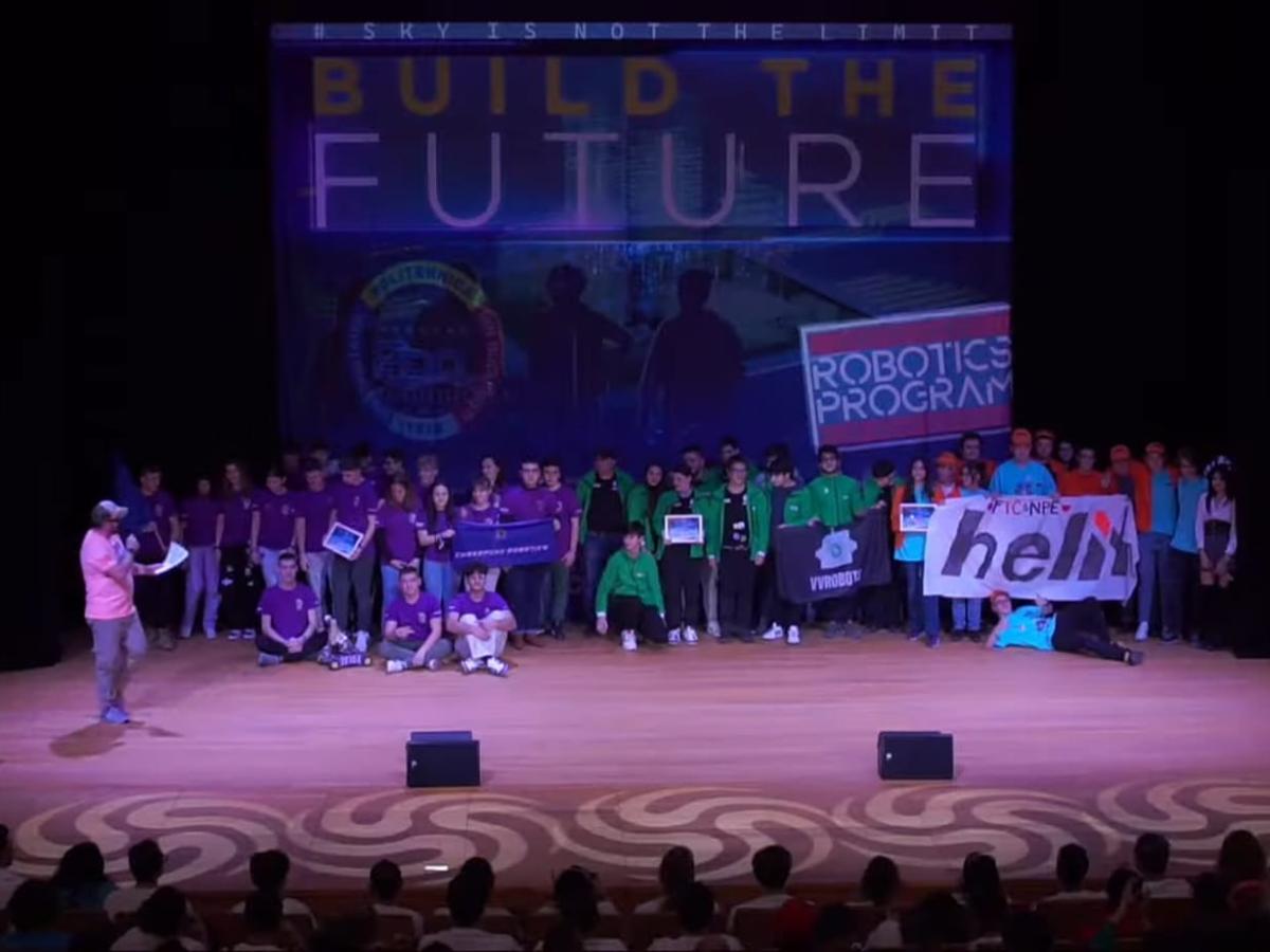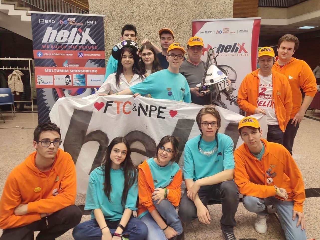 Iată și cine sunt campionii la robotică. Echipa “Helix” este formată din elevii Cristian Ionuț Soiu, Gabriel Sebastian Roșioru, Alexandru Ștefan Petcu, Mihai Chirovan, Alexia Ion, Ștefan Ghețu, Eva Pacea, Codruț Caramarin și Maria Sipică, mentori fiind Silviu Gheorghe și Alin Roșioru.