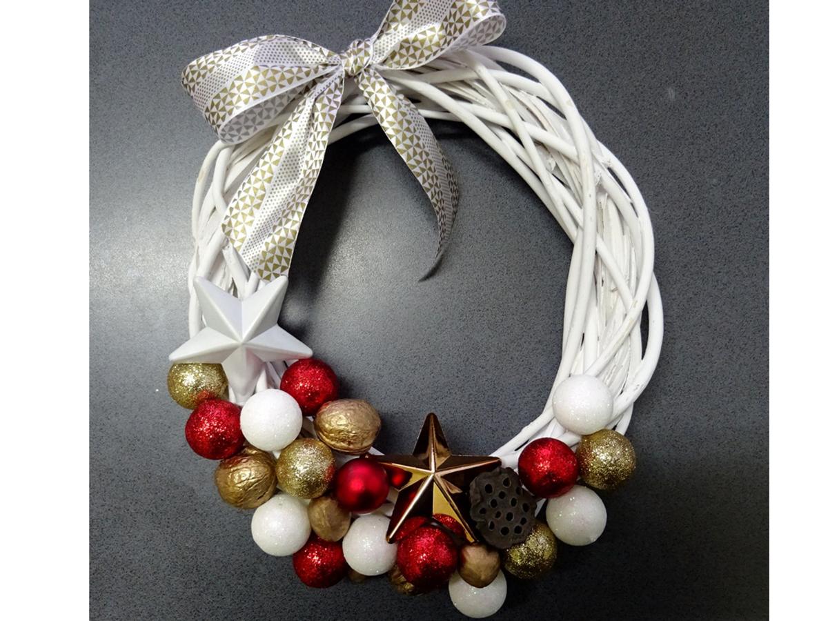 O femeie din Brăila, Andreea Mihoci, ne-a adus la redacţie, ieri, un ornament de Crăciun, pentru licitaţia de vineri. Este vorba despre o coroniţă albă, realizată manual, decorată cu globuleţe şi fructe uscate. Preţul de pornire este 60 lei.
