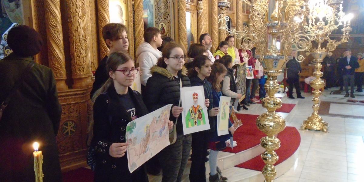 Sfânta Liturghie a fost oficiată de preoţii parohiei care, la final, le-au oferit elevilor pachete cu dulciuri şi fructe, cărţi de rugăciuni, iconiţe, precum şi revista “Călăuză Ortodoxă” a Eparhiei Dunării de Jos. Părintele paroh Costel Vatră i-a felicitat pe micuţi şi a rostit un cuvânt de învăţătură, evocând, totodată, însemnătatea zilei cunoscută drept “Duminica Ortodoxiei”, prima din Postul Paştelui.