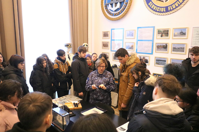 • tinerii artiști, însoțiți de prof. Florentina Giol, Marilena Ioanid, Maricica și Sorinel Cârstiuc, artiști plastici consacrați, au vizitat Sala de Tradiții a Flotilei Fluviale „Mihail Kogălniceanu” Brăila