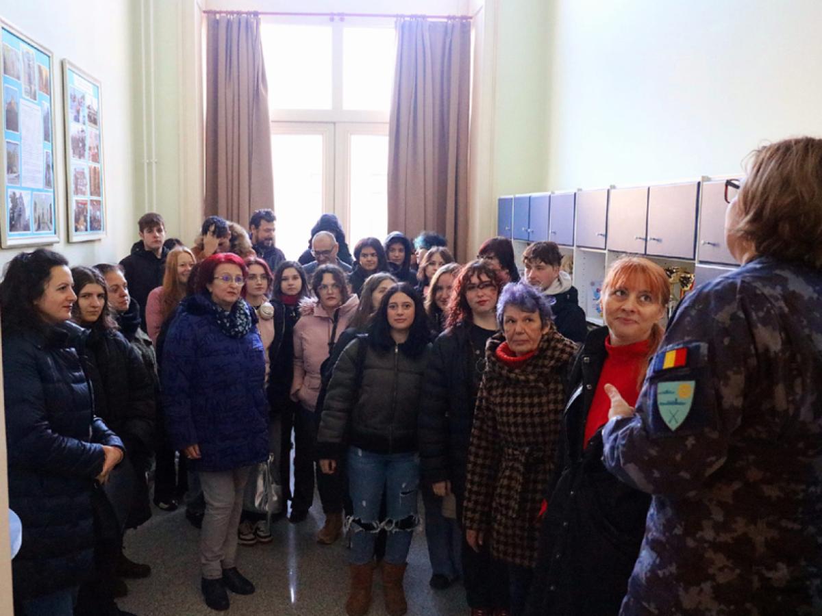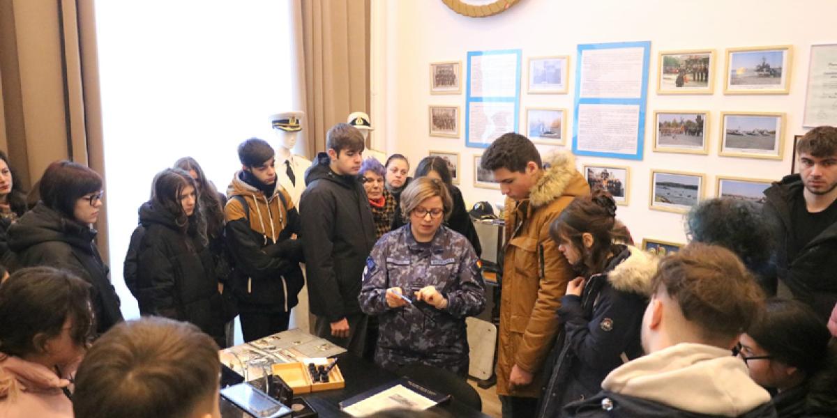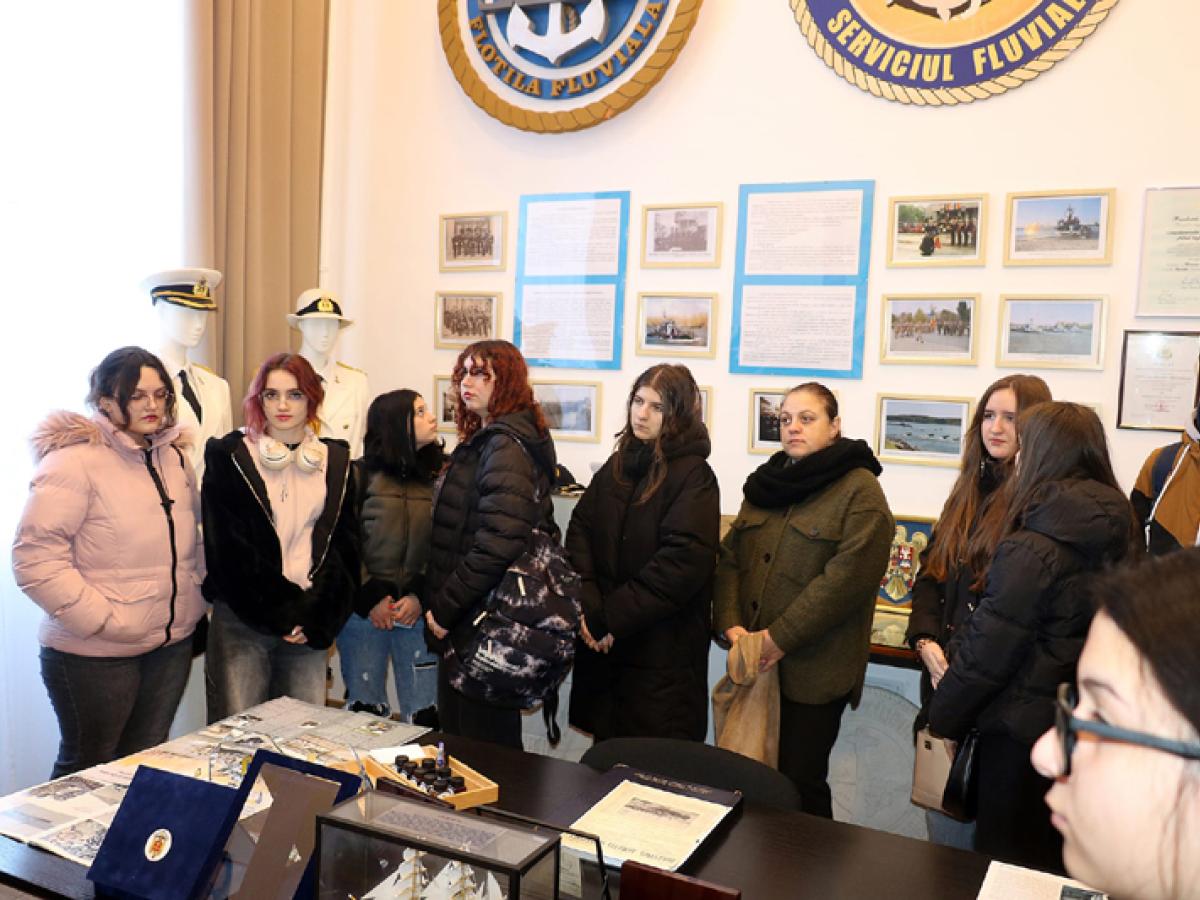 La inițiativa col. ing. (rz.) Mihail Balaban, președintele Filialei Brăila „General Stan Poetaș” a Asociației Naționale Cultul Eroilor „Regina Maria”, zilele trecute, talentații elevi ai Liceului de Arte „Hariclea Darclée” Brăila au fost oaspeții Comandamentului Flotilei Fluviale „Mihail Kogălniceanu”, de pe Strada Împăratul Traian. Tinerii artiști, însoțiți de cadrele didactice - prof. Florentina Giol, Marilena Ioanid, Maricica și Sorinel Cârstiuc, artiști plastici consacrați - au avut ocazia să exploreze o parte din istoria și tradițiile militare ale Flotilei Fluviale „Mihail Kogălniceanu”, în cadrul unei vizite la Sala de Tradiții.