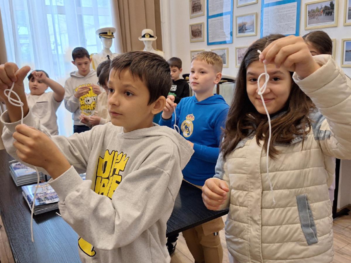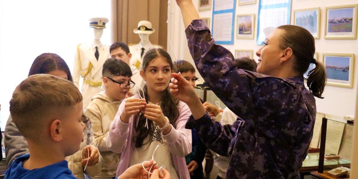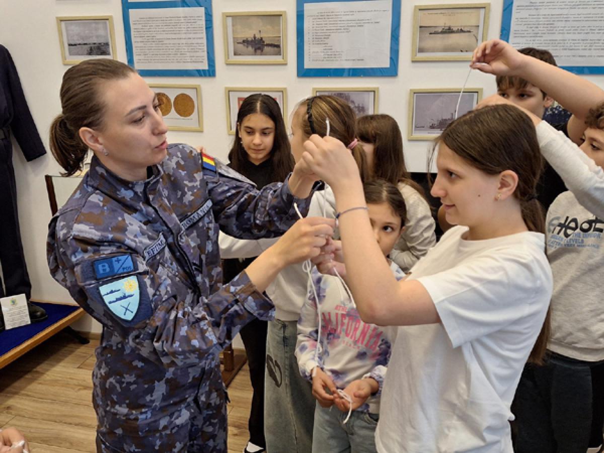 • două clase de elevi de gimnaziu, de la Colegiul Național „Ana Aslan” Brăila, au avut parte de o experiență inedită în cadrul unei vizite educative întreprinse la Sala de Tradiții a Comandamentului Flotilei Fluviale • elevii au învățat să facă noduri marinărești și au aflat despre reponsabilitate, disciplină și spirit de echipă - elemente esențiale în formarea unui militar