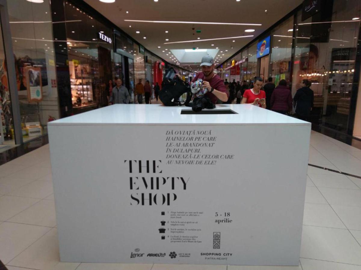 Campania The Empty Shop s-a derulat în perioada 5 aprilie – 18 aprilie, în magazinul dedicat din “Promenada” şi în alte 12 puncte de colectare organizate în mall-urile City Park Constanţa, Shopping City Timişoara, Shopping City Galaţi, Brăila Mall, Shopping City Piatra Neamţ, Ploieşti Shopping City, Shopping City Deva, Aurora Shopping Mall (Buzău), Shopping City Târgu Jiu, Severin Shopping Center, Shopping City Râmnicu Vâlcea, Shopping City Sibiu.