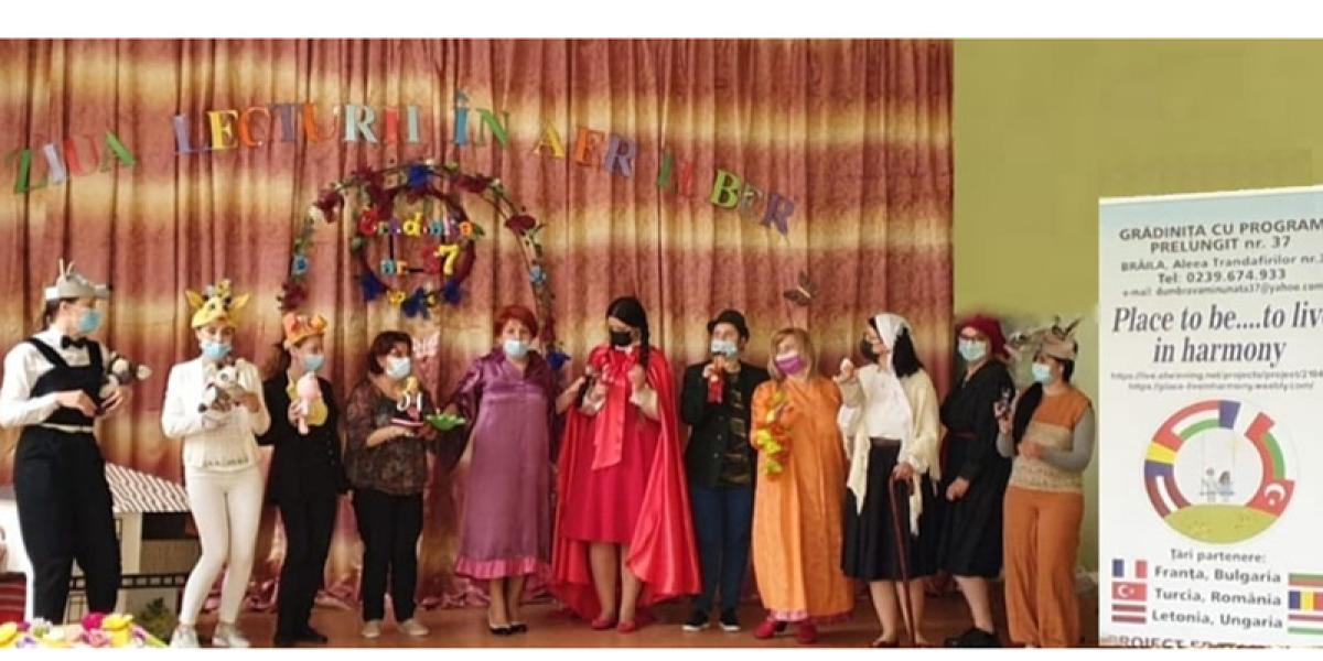Punctul central al zilei a fost însă, prezentarea scenetei create de cadrele didactice ale grădiniței, inspirate de mascotele reprezentative ale celor 6 povești ale țărilor partenere în proiectul „Place to be…to live in harmony” finanțat prin Programul Eramus+ de către Uniunea Europeană. Personaje ale poveștilor „Scufița Roșie”, „Iedul cu trei capre”, „Fata cu părul de aur”, „Mănușa”, „Cine vinde murături”, „Micul porcușor și lupii”, și-au dat mâna și pe scena în aer liber a grădiniței și au devenit eroi într-o nouă poveste.