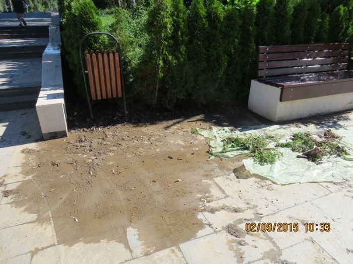 Iar, din păcate, la arteziana cu pricina mai sunt şi alte probleme: banda de ghidaj pentru nevăzători este tot incompletă, de când a fost ruptă în timpul iernii, la deszăpezire; în bazin se aruncă gunoaie şi ambalaje; constructorul a dislocat plăcile unei rampe de acces pietonal.