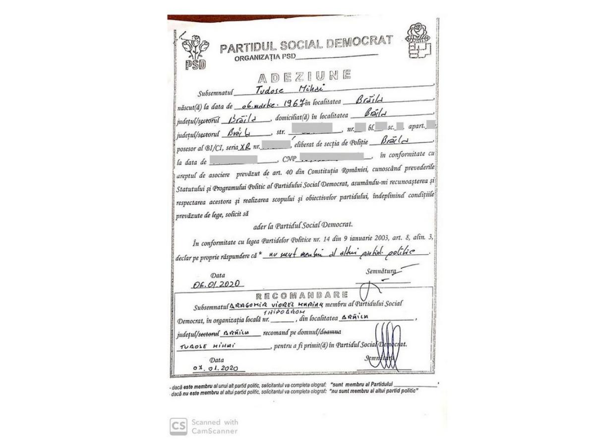 Acesta a adăugat chiar un exemplar al adeziunii semnate de Tudose, unde se vede clar că documentul vine la recomandarea sa.