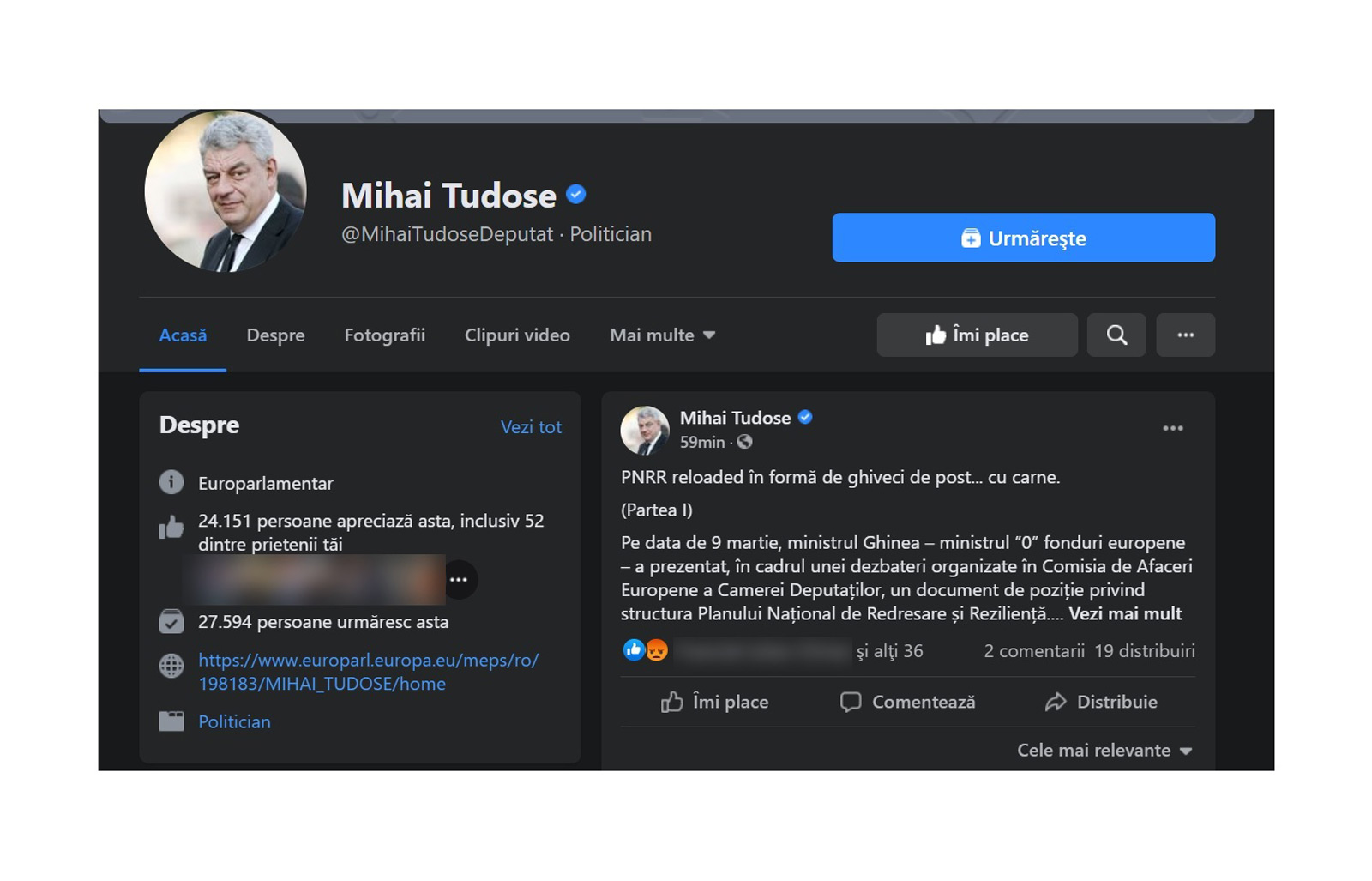 * politicianul brăilean a postat, recent, un comunicat pe pagina sa de Facebook, în cadrul căruia a făcut o scurtă analiză a Planului Național de Redresare și Reziliență (PNRR) propus de ministrul Investițiilor și al Proiectelor Europene, Cristian Ghinea * potrivit europarlamentarului, Mihai Tudose, PNRR este o colecție ilogică, cu iz de anticariat, de reforme, care nu corelează rațiunea europeană cu nevoile României