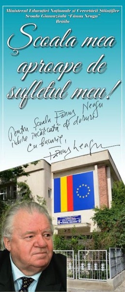 Vineri, 13 mai, între orele 12.00 - 14.00, la Şcoala Gimnazială "Fănuş Neagu" din Brăila va avea loc o evocare a marelui patron spiritual al acestei unităţi de învăţământ. La evenimentul care marchează 5 ani de la trecerea în lumea metaforei eterne a lui Fănuş şi care face parte din activităţile celei de a doua ediţii a Festivalului de CArte (în derulare zilele acestea la Brăila), participă: acad. Nicolae Breban, Ioan Groşan, Viorel Coman, Dumitru Paica, Nicolae Iliescu şi Dan Claudiu Tănăsescu. Manifestarea va fi moderată de Lucian Chişu.