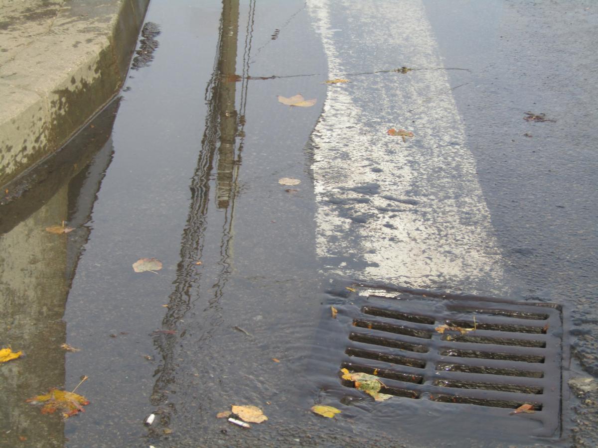 * luni, s-a mai făcut o tentativă de reasfaltare a carosabilului, astfel încât apa de ploaie să se scurgă corespunzător la canalizare * ieri, la proba cu apa, tot s-a format baltă în stație