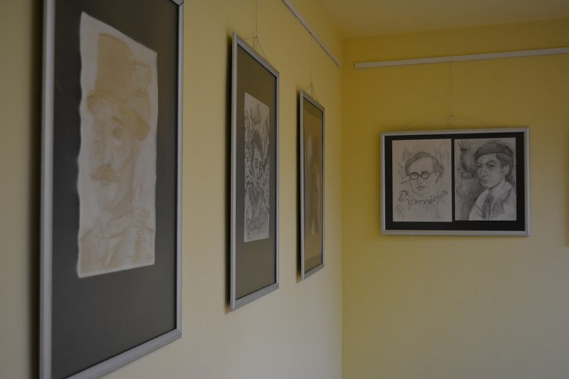 Vizitatorii pot admira portretul marelui scriitor Panait Istrati, un scriitor european, publicat şi republicat continuu în diverse colţuri ale lumii, portretele marilor filosofi Nae Ionescu, Petre Andrei, Anton Dumitriu, al actriţei Maria Filotti, precum şi ale unor personalităţi contemporane: Johnny Răducanu şi Şt. Mihăilescu Brăila.