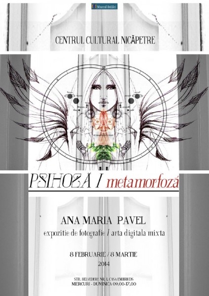 Sâmbătă, 8 februarie, la Centrul Cultural "Nicăpetre", din str. Belvedere nr. 1, va avea loc vernisajul expoziţiei de fotografie/artă digitală mixtă intitulată "Psihoză/metamorfoză", semnată de Ana Maria Pavel. Evenimentul, organizat de Muzeul Brăilei, va începe la ora 11.00. Tânăra artistă, absolventă a Liceului de Artă "Hariclea Darclee" Brăila, a studiat la Universitatea de Artă şi Design Cluj Napoca şi a câştigat numeroase premii la concursuri naţionale de pictură, fotografie, arte vizuale. De asemenea, a colaborat cu teatre naţionale şi internaţionale, pentru care a creat costume, afişe publicitare şi scenografie. Astfel, între 2008 şi 2009, la Teatrul "Maria Filotti" Brăila a realizat costumele şi designul de afiş pentru piesele "Omul Pernă", de Martin McDonagh, regizată de Radu Afrim şi "8 Femei", de Robert Thomas, regizată de Radu Nichifor. A mai colaborat cu Teatrul Naţional Turda, Teatrul Naţional Lucian Blaga din Cluj Napoca, Teatrul Naţional Andrei Mureşanu din Sfântu Gheorghe şi Institutul Cultural Român de la Paris.