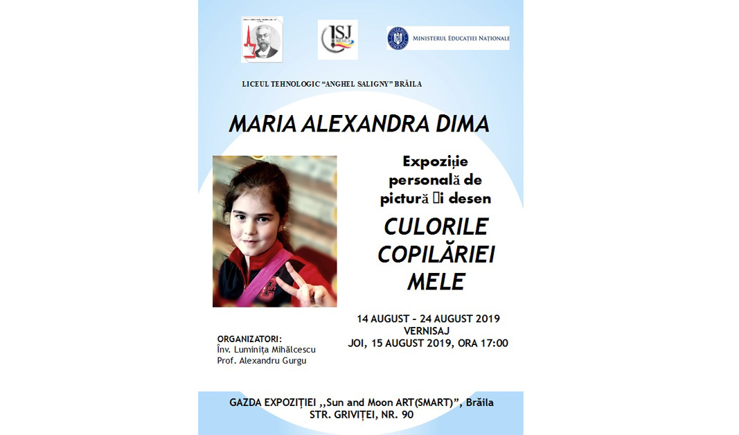 • Maria-Alexandra Dima va avea parte de prima expoziţie de pictură din viaţa sa, pe 15 august, cu ocazia zilei onomastice • lucrările vor fi expuse la Atelierul de Pictură “Sun&Moon Art (SMART)” de pe strada Griviţei, nr. 90