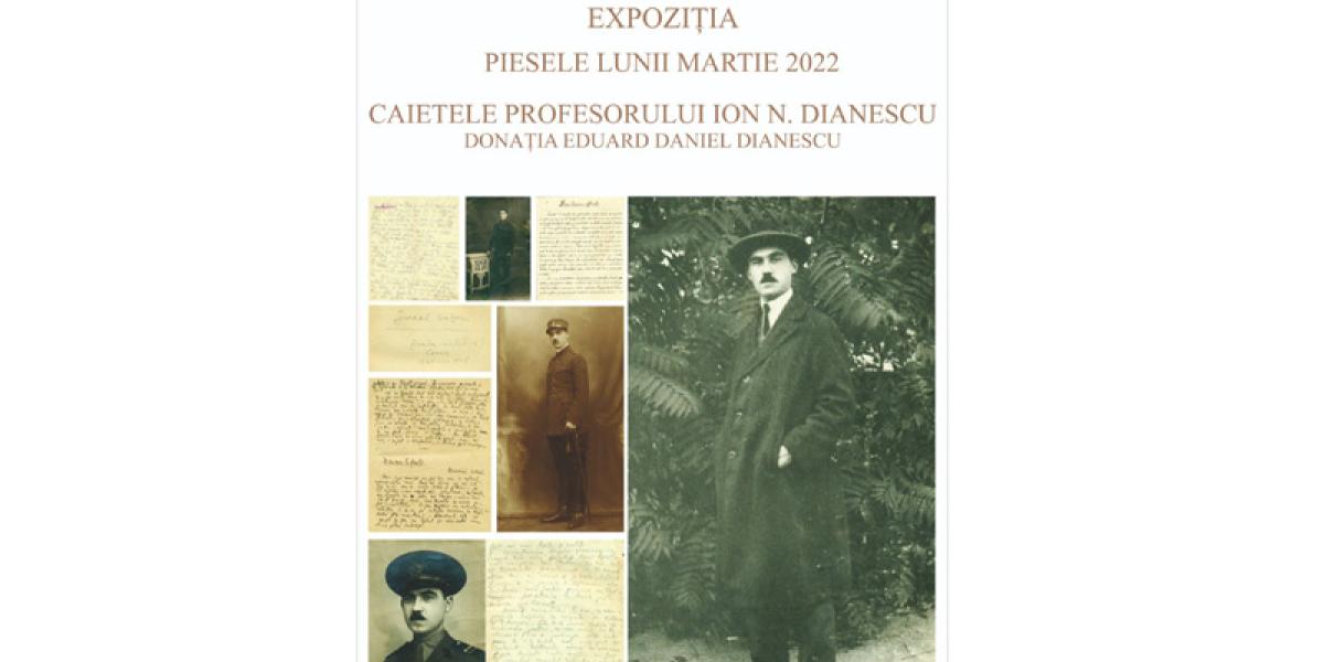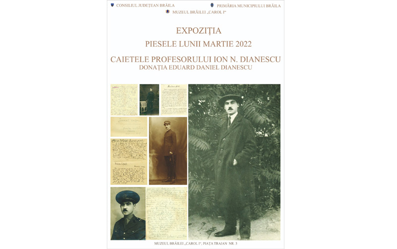 Astfel, începând cu data de 10 martie a.c., la sediul Muzeului Brăilei "Carol I" din Piața Traian nr. 3, elevii, profesorii și iubitorii de istorie și de cultură din orașul nostru pot vizita Expoziția "Piesele lunii martie 2022. Caietele profesorului Ion N. Dianescu" - donația Eduard Daniel Dianescu.