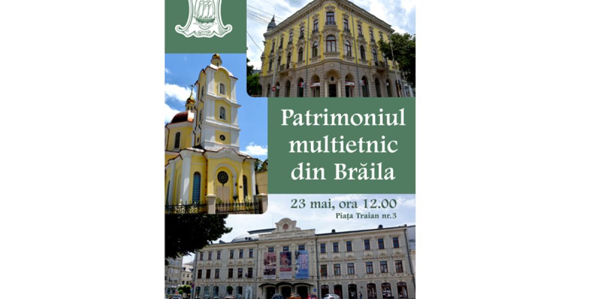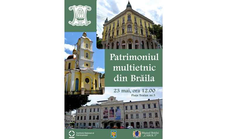 Iubitorii de cultură și patrimoniu sunt invitați, vineri, 23 mai, ora 12:00, la vernisajul expoziției Patrimoniul multietnic din Brăila, care se va desfășura la Muzeul Brăilei „Carol I” (Piața Traian nr. 3). Expoziția, realizată în parteneriat de Muzeul Brăilei „Carol I” şi Institutul Național al Patrimoniului (INP), reprezintă rezultatul unui proiect de cercetare de teren și la Serviciul Județean Brăila al Arhivelor Naționale, ce s-a concretizat în 30 de panouri foto-documentare.
