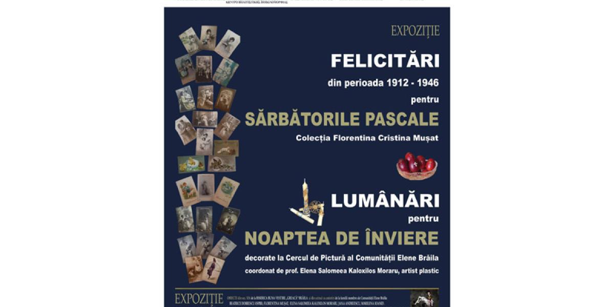 Brăilenii pot vizita, în luna mai, la Muzeul Brăilei „Carol I” - Centrul Diversității Culturale (Piața Traian nr. 3), Expoziția temporară „Felicitări din perioada 1912 - 1946, pentru Sărbătorile Pascale” (Colecția Florentina Cristina Mușat) și „Lumânări pentru Noaptea de Înviere / Πασχαλινές Λαμπάδες”, decorate la Cercul de Pictură al Comunității Elene, coordonat de prof. Elena Salomeea Kaloxilos Moraru, artist plastic brăilean.