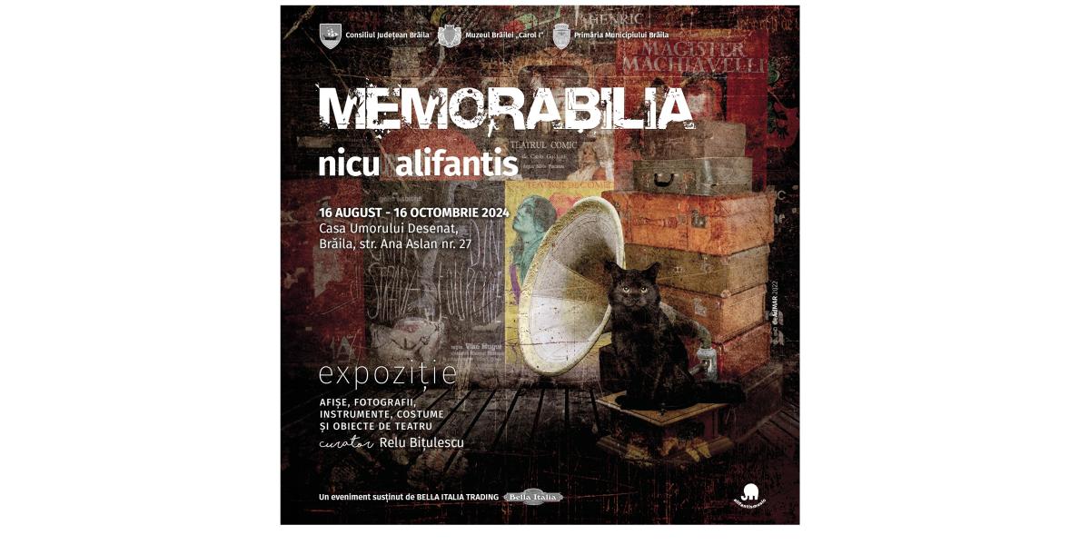 Muzeul Brăilei „Carol I”, cu sprijinul Primăriei Municipiului Brăila și al Consiliului Județean Brăila organizează vineri, 16 august, începând cu ora 19.00, la Casa Umorului Desenat, de pe Strada Ana Aslan nr. 27, Expoziția MEMORABILIA. Evenimentul are loc în prezența maestrului Nicu Alifantis, Cetățean de Onoare al Municipiului Brăila, al conf. univ. dr. Costin Croitoru, managerul Muzeului Brăilei „Carol I”, al altor personalități ale vieții culturale brăilene.