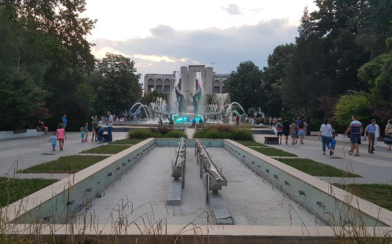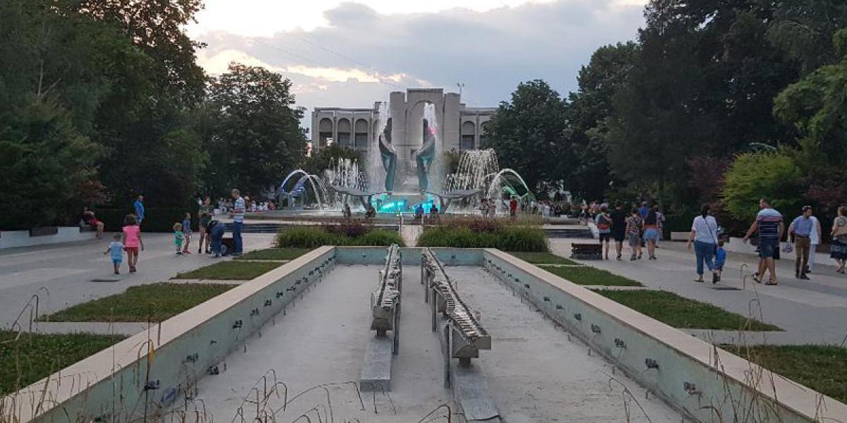 • este vorba despre o porţiune din ansamblul fântâni cinetice, cea de pe platoul pietonal secund, care a rămas fără apă din cauza unor probleme tehnice • deşi componentele necesare au fost comandate în urmă cu două săptămâni, nici până în ziua de astăzi nu au fost livrate piesele • chiar şi aşa, responsabilii abia acum s-au apucat să vopsească bazinul fântânii