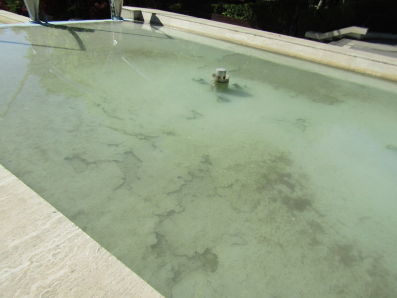 Iar pentru ca totul să fie complet anapoda, de câțiva ani apa din bazinele fântânii cinetice este verde sau lăptoasă. Apa din cuve ar trebui să fie limpede-cristal, precum în piscine și la bazinele de înot. Or, la noi, din cauza impurităților din apă se ajunge inclusiv la acea mătuire a componentelor din inox și a spoturilor multicolore. Iar cine vrea să consulte cum se procedează preventiv în alte orașe și țări, va afla despre câteva condiții obligatoriu de respectat: curățarea odată pe săptămână a filtrelor de la pompe, și spălarea (tot săptămânal) a nisipului de filtrare; adăugarea, la 7 zile, a substanțelor antialge; curățarea bazinului și a cuvelor de frunze, hârtii etc. În plus, prin alte părți, artezienele nu se construiesc în apropiere de copaci. Şi mai este un aspect, primordial, spun specialiștii în domeniu: montarea unor dozatoare automate pentru clor (nu prin adăugarea de cloramină, care ar putea da apei acel aspect lăptos), iar zilnic (!) să fie determinați și menținuți doi parametri: pH-ul apei (între 7,2 -7,6), dar și conținutului de clor (între 0,6 și 1,5 mg/l). Cu precizarea că nerespectarea strictă a dozajelor stabilite științific conduce la poluare, un consum inutil de clor; la afectarea aspectului/mirosului apei și a componentelor fântânii (bazine, circuitul tehnologic). Specialiștii mai spun că ar trebui, periodic, să se facă o verificare a durității apei, iar în caz de necesitate să se folosească o instalație de dedurizare. Ori, la fântâna cinetică brăileană s-au format stalactite pe tavanul sălii mașinilor, atât de dură este apa care se infiltrează din bazinele exterioare, apă care circulă, de altfel, și prin instalațiile de pompare...