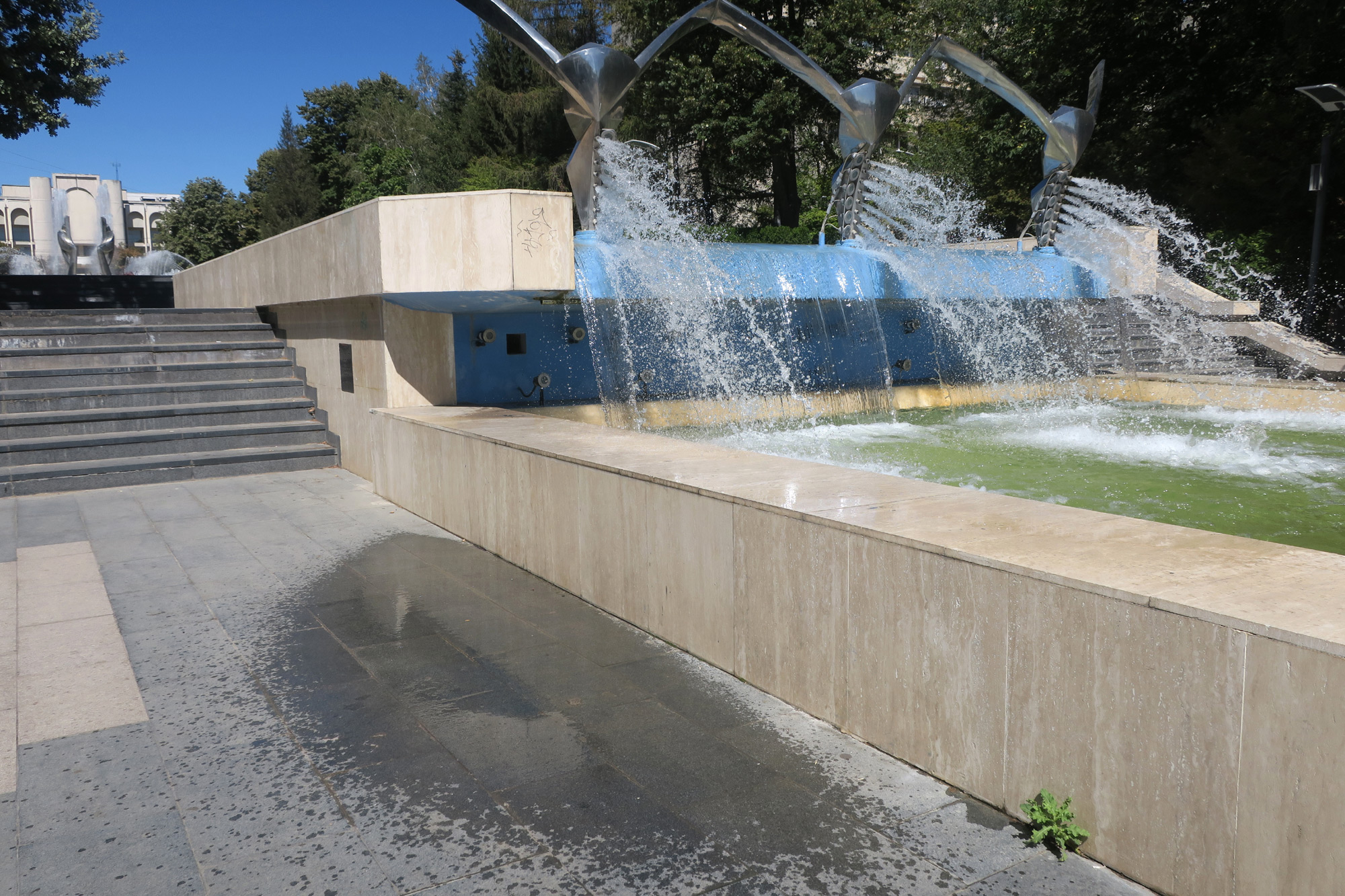• potrivit ing. Leonid Bîrcă, apa care se revarsă, uneori, peste bazinele fântânii-cascadă nu afectează în niciun fel structura instalaţiei • pentru evitarea acestui inconvenient, angajaţii CUP “Dunărea” pot reduce debitul, însă nu pot regla direcţia jetului de apă • constructorul fântânii cinetice de pe Esplanadă ne-a spus că, la vremea la care a fost construită, fântâna cinetică de la Brăila era cea mai mare din ţară