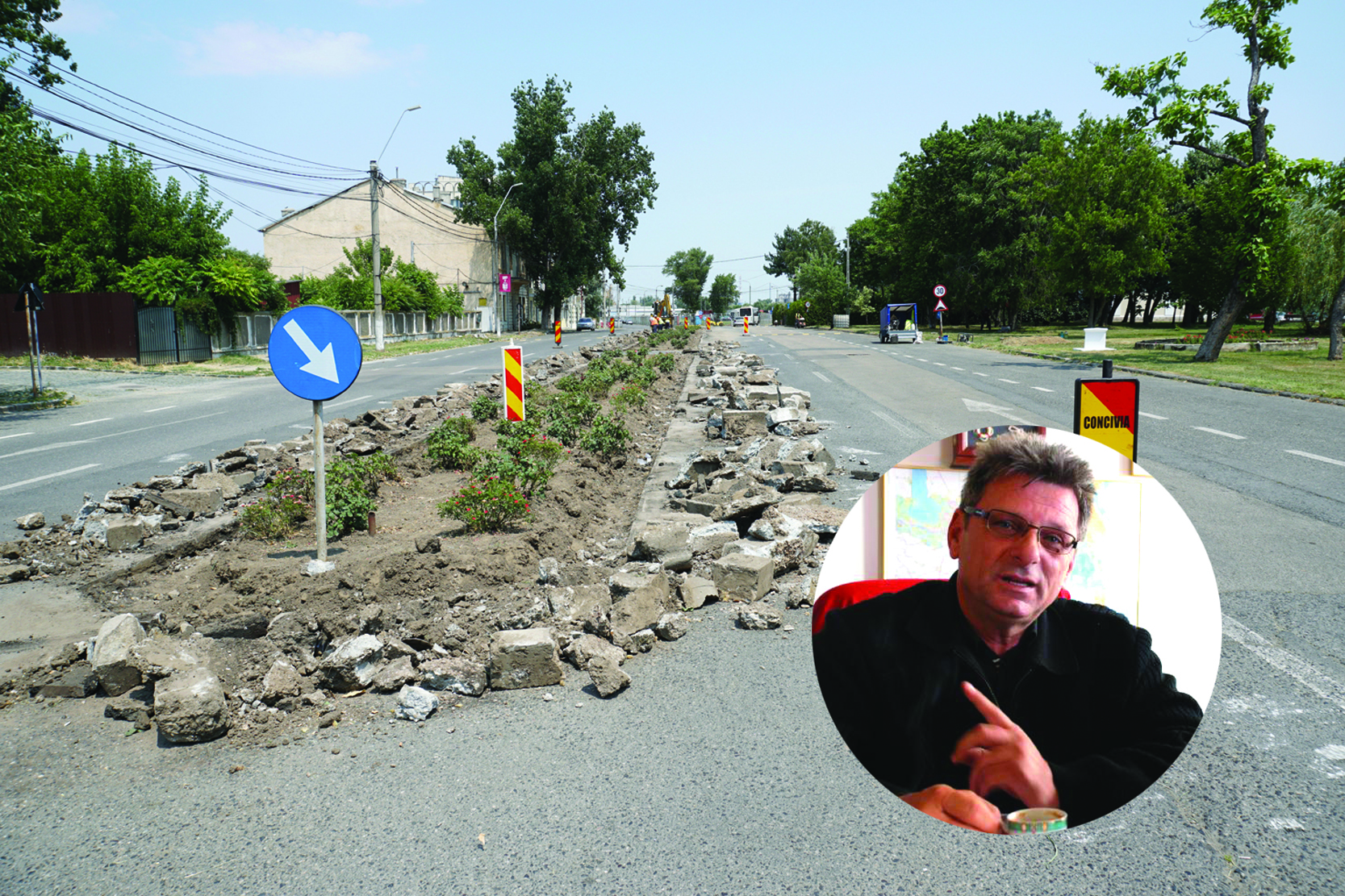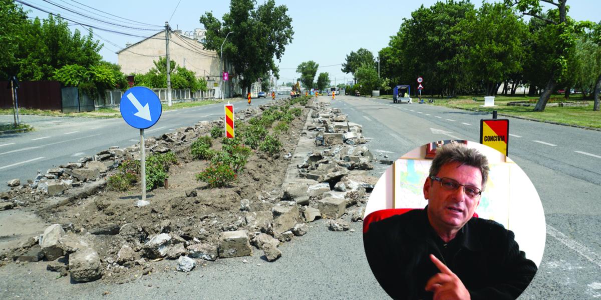 • de câteva zile, a intrat în reabilitare porțiunea de faleză dintre strada Împăratul Traian și moara Violatos • lucrările sunt executate de firma ”Concivia” în cadrul contractului multianual de întreținere străzi din municipiu • vor fi refăcute trotuarele și stațiile verzi și se va turna strat nou de asfalt pe carosabil • reprezentanții Primăriei ne-au confirmat faptul că vor fi eliminate limitatoarele de viteză montate în urmă cu circa 7 ani pe cheltuiala patronului firmei ”Romnav” • proprietar al imobilului de patrimoniu al fostei Căpitănii, Gheorghe Antistescu (foto medalion) era deranjat de șoferii care făceau ”liniuțe” noaptea aproape de ferestrele sale, iar montarea acelor ”cocoașe” l-a scăpat de stres
