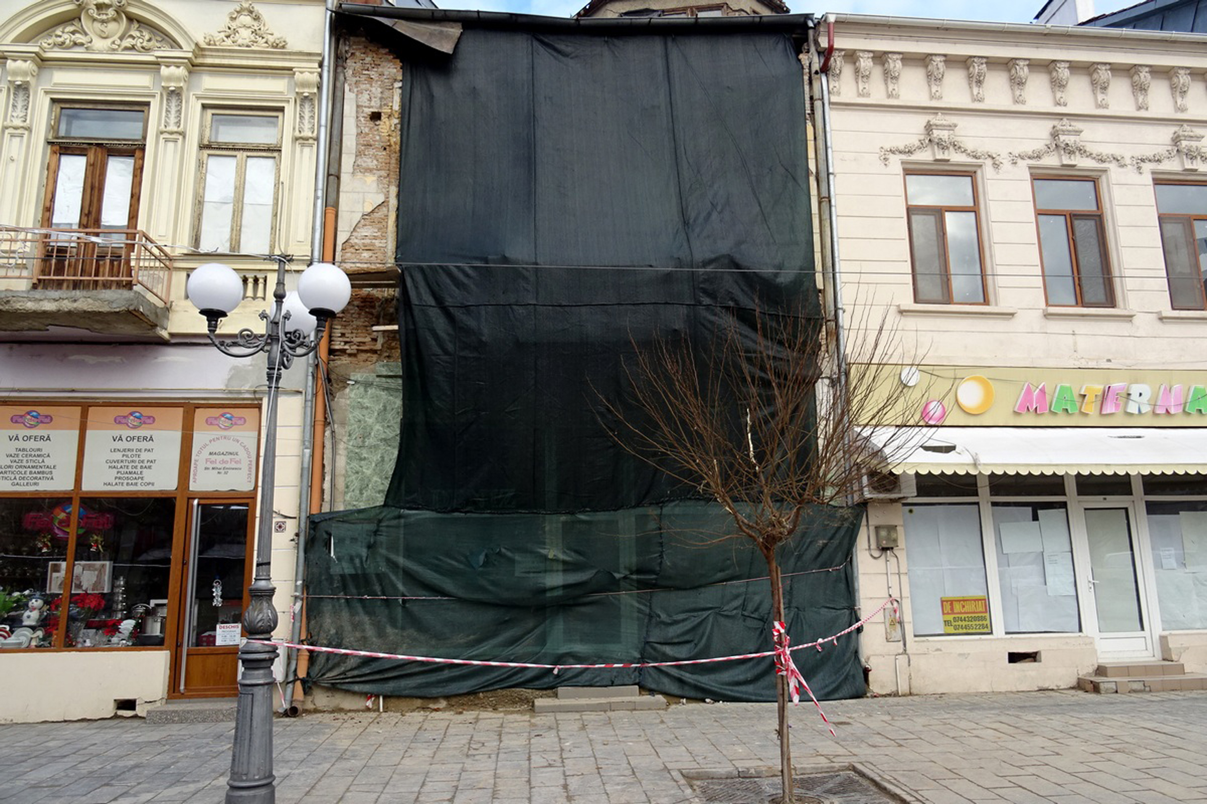 După cum v-a mai informat cotidianul nostru în urmă cu câteva luni, clădirea respectivă, situată vizavi de sediul Serviciului de Utilitate Publică, Administrare Fond Locativ şi Cimitire (SUPAFLC), îi aparţine firmei “Venta Prodcom” SRL controlată de afaceristul brăilean Gheorghe Puşcaşu. Firma în cauză a fost amendată de Poliţia Locală de mai multe ori, în perioada 2017 - 2018, cu sume modice, de maxim 200 lei, prevăzute într-o hotărâre de Consiliu Local, pentru că nu a luat măsuri de consolidare şi restaurare a faţadei degradate. Astă primăvară, Gheorghe Puşcaşu, care mai administrează şi firma de construcţii “P&G Construct” SRL, a reacţionat faţă de aceste amenzi repetate. Acesta afirma că are intenţia de a repara faţada, însă nu ar fi fost lăsat de autorităţile locale, care nu vor să-i dea autorizaţie de construcţie, nici măcar în regim de urgenţă. Primăria ne-a informat la vremea respectivă că autorizaţia nu se poate elibera deoarece proprietarul clădirii nu a primit aviz de la Direcţia pentru Cultură, ca să poată interveni asupra faţadei. Până la urmă, la începutul verii, Gheorghe Puşcaşu a acoperit faţada degradată cu o plasă verde, spunând că va face consolidarea imediat ce va primi autorizaţiile necesare. Până la această dată, clădirea a rămas în acelaşi stadiu, astfel că până la urmă o parte din zidul exterior a cedat şi s-a prăbuşit.