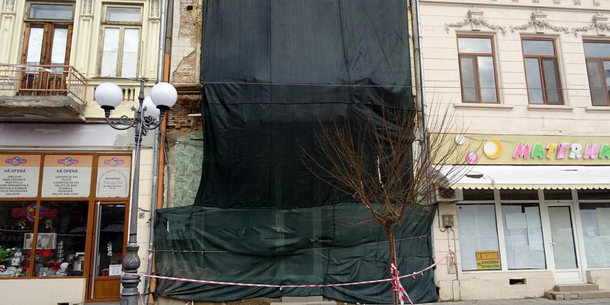 • firma care deţine clădirea al cărei zid exterior s-a prăbuşit peste trotuar înainte de Crăciun a primit doar un avertisment din partea Poliţiei Locale • măsura a fost luată pe considerentul că proprietarul a făcut demersuri pentru obţinerea autorizaţiei de construcţie şi că documentul a fost eliberat abia la începtul lunii decembrie • afaceristul Gheorghe Puşcaşu, proprietarul de facto al clădirii, ne-a declarat că a făcut tot ce i-a stat în putinţă pentru a consolida faţada cu probleme, însă nu a fost sprijinit de autorităţile locale • Primăria spune că nu a putut elibera mai repede autorizaţiile necesare, atât timp cât de la dosar lipsea avizul Direcţiei pentru Cultură