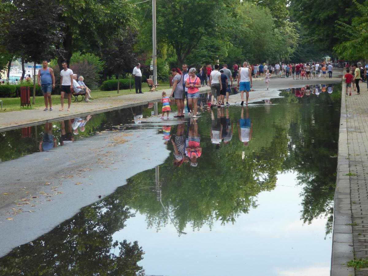 Dar cum (şi) la Brăila lucrurile nu sunt duse niciodată până la capăt, ori sunt trecute la “şi altele”, iată că în zi de week-end ai parte şi de surprize neplăcute: coşuri de gunoi şi pubele debordând de gunoaie; o vitrină frigorifică ruginită aruncată în spatele ştrandului; saci cu gunoaie în spatele teraselor; apă cât vezi cu ochii de-a lungul aleii principale. Şi nu numai: o bancă distrusă de anul trecut; toaleta publică aflată într-o perpetuă închidere “pentru reparaţii şi igienizare”, până una – alta folosindu-se “în caz de urgenţă” spatele budei municipale; din două cişmele una este obturată, iar cealaltă de nefolosit; grămezi de gunoaie şi peturi, crengi etc – pe spaţiul verde, dar şi pe apă, sub o pasarelă (autori, pescarii amatori, precum şi ce aduce Dunărea din amonte); balustrada distrusă, de la fostul heliport (atenţie părinţi, atenţie copii!!!, să nu cădeţi în Dunăre); aleea pietonală de la nava Mureş în aval, cu gropi şi denivelări, la care se adaugă crengile, frunzele uscate, dar şi trunchiul unui ditamai copacul doborât de furtună - uitat în faza de tăiat cu drujba; bălţi enorme cu apă, inclusiv în apropierea noii căpitănii etc. Alte surprize nedorite, într-un viitor episod. Dar până atunci sperăm ca ai noştri edili să intervină cu promptitudine pe cele semnalate mai sus. Spor la treabă!