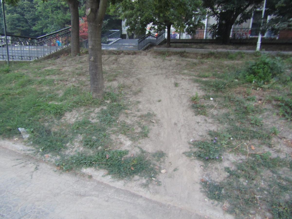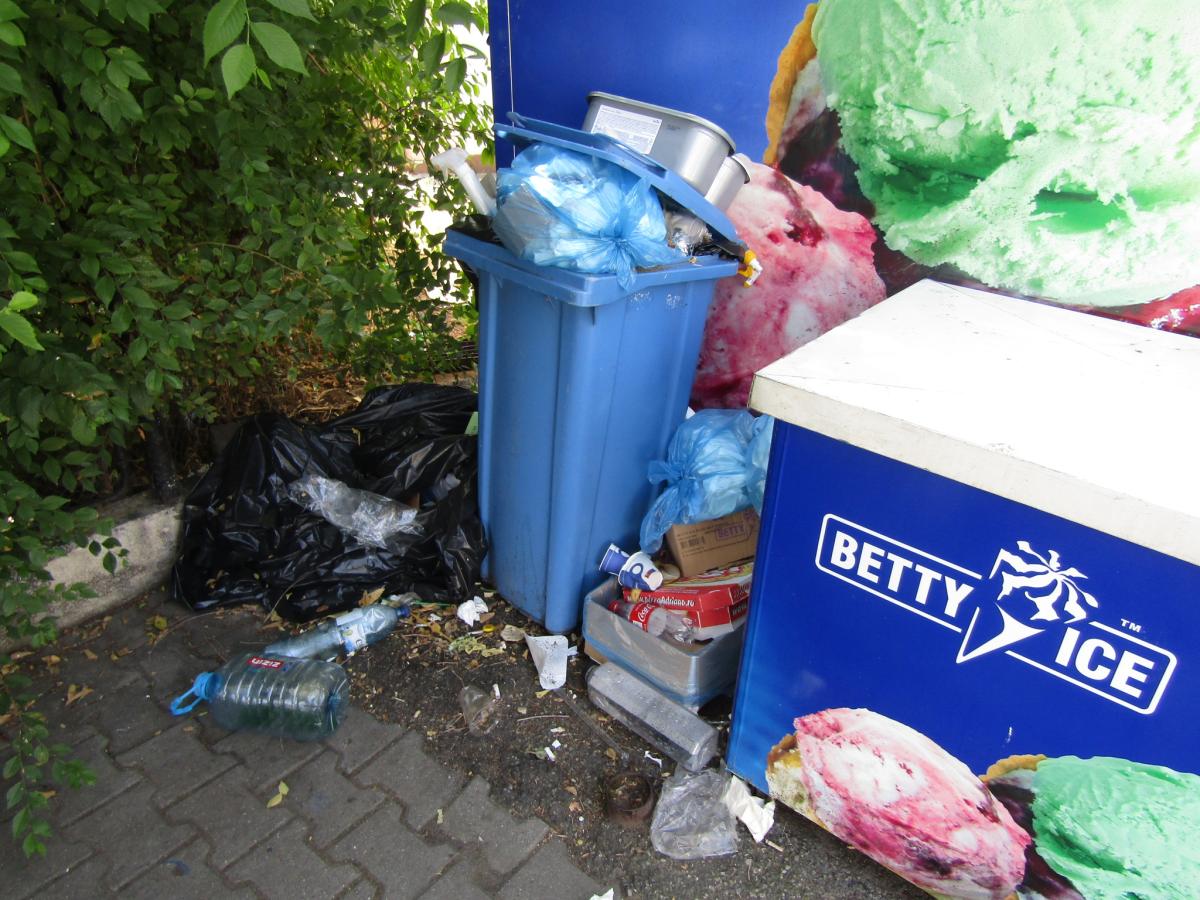 Total în neregulă este mormanul de gunoi în putrefacţie, aflat zile întregi chiar lângă chioşcul cu îngheţată. Şi tot lângă acest chioşc, mirosul pestilenţial venit din spatele toaletei publice năpădite de bălării, închisă zdravăn cu câteva lacăte şi în spatele căreia îşi fac mulţi necesităţile... Au fost tăiaţi, după ani de zile, circa 10-15 copaci uscaţi, de la baza taluzului spre fostului cazinou. Spre scenă, o insulă unde trebuia să fie gazon este doar o bucată de pământ uscat; taluzul spre hotel este cu denivelări şi poteci create ad-hoc.