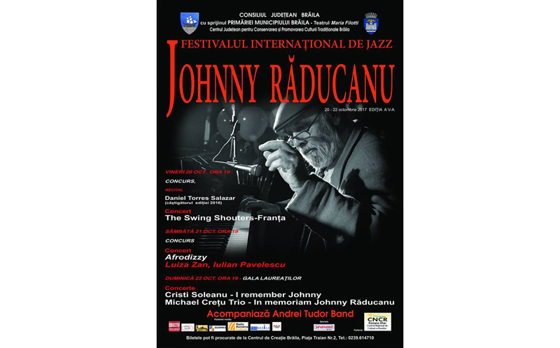 Sâmbătă, 21 octombrie, ora 19.00: concurs, concert AFRODIZZY, însemnând Luiza Zan şi Iulian Pavelescu, iar duminică, 22 octombrie, la ora 19.00 Gala Laureţilor, urmată de concertele susţinute de CRISTI SOLEANU – I remember Johnny, MICHAEL CREŢU TRIO – In memoriam Johnny Răducanu.