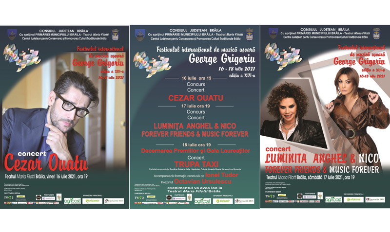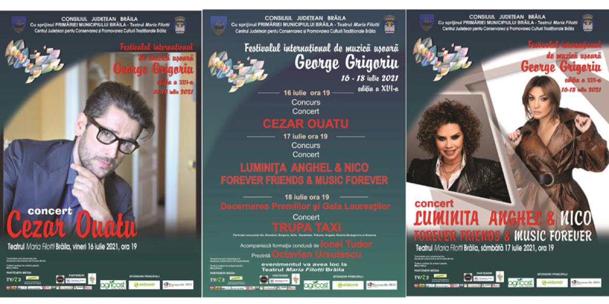 Consiliul Județean Brăila, cu sprijinul Primăriei Municipiului Brăila, al Teatrului "Maria Filotti" și al Centrului Județean pentru Conservarea și Promovarea Culturii Tradiționale (CJCPCT) - Centrul de Creație Brăila organizează, în perioada 16-18 iulie 2021, Festivalul Internațional de Muzică Ușoară "George Grigoriu", Ediția a VI-a, la care participă concurenți din România, Italia, Polonia, Ungaria, Bulgaria, Kazahstan, Bosnia Herțegovina și Armenia. Acompaniază orchestra condusă de Ionel Tudor. Prezintă Octavian Ursulescu.