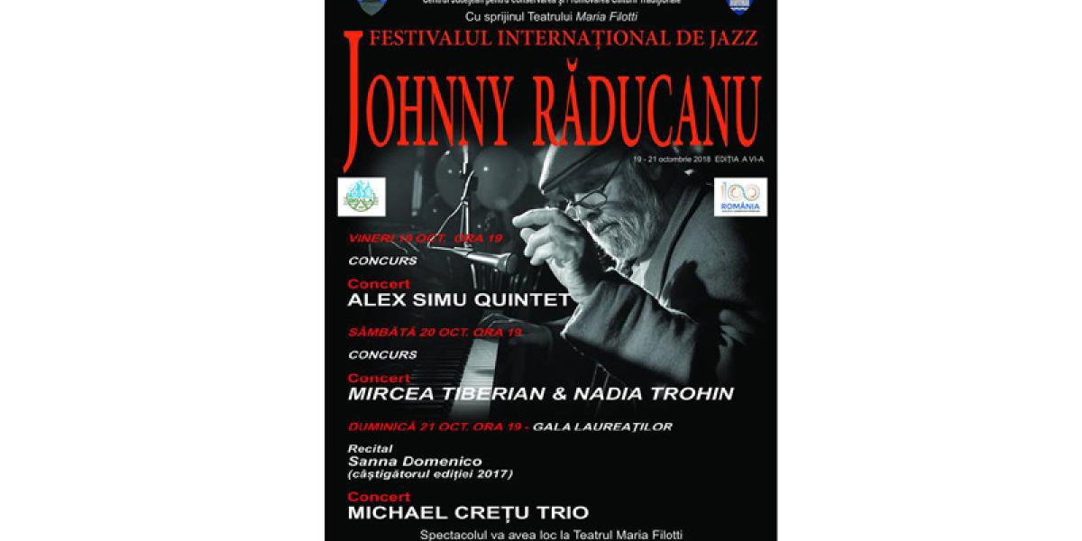 Festivalul Internaţional de Jazz Johnny Răducanu, ediţia a VI–a, va avea loc la Teatrul “Maria Filotti” Brăila, în perioada 19-21 octombrie 2018.