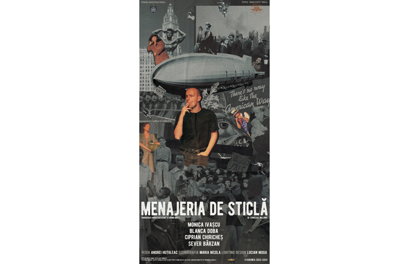 De Tennesee Williams. Durata: 2h 20minute. DISTRIBUȚIA: Amanda – Monica Ivașcu, Tom - Ciprian Chiricheș, Laura- Blanca Doba, Jim – Sever Bârzan. Regia artistică - Andrei Huțuleac, Scenografia - Maria Nicola, Light design - Lucian Moga, Sound & Video design - Sever Bârzan, Regie tehnică - Emanuel Bișa, Lumini - Florin Lazar, Sunet - Marius Cotescu, Operator proiecții - Ștefan Cudălbeanu, Consultant sunet - Sever Andrei, Realizare afiș - Blanca Doba.
