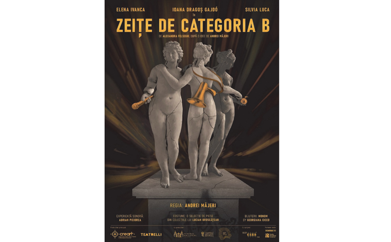 „Zeițe de categoria B”, de Alexandra Felseghi, după o idee de și în regia lui Andrei Măjeri, este un spectacol-eveniment care își propune să aducă pe aceeași scenă actrițe din trei orașe și trei teatre diferite, aplaudate în spațiile geografice în care joacă, dar mai puțin cunoscute în afara lor, Elena Ivanca (actriță a Teatrului Național „Lucian Blaga” Cluj-Napoca), Ioana Dragoș Gajdó (actriță a Teatrului „Regina Maria” Oradea), Silvia Luca (actriță a Teatrului „Mihai Eminescu” Botoșani).