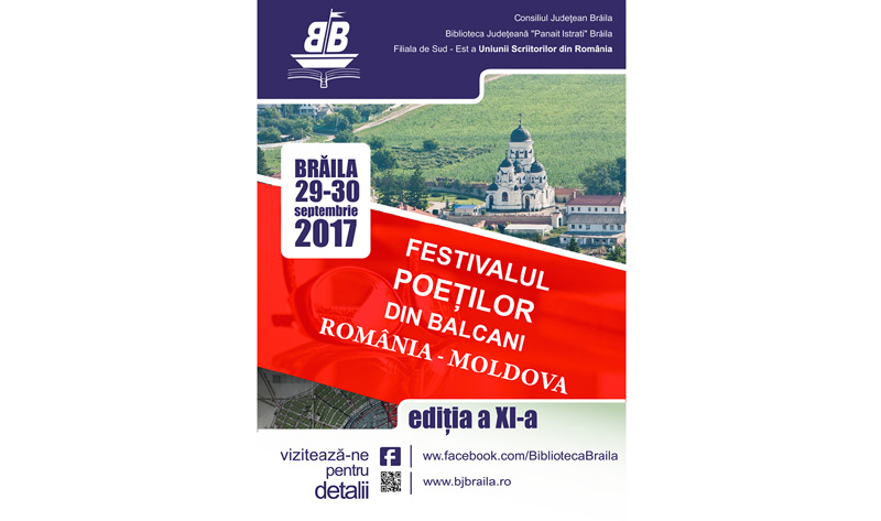 În perioada 29-30 septembrie, la Brăila are loc cea de a XI-a ediţie a Festivalului Poeţilor din Balcani, România – Moldova, eveniment organizat de Consiliul Judeţean Brăila, Biblioteca Judeţeană “Panait Istrati” Brăila şi Uniunea Scriitorilor din România, Filiala Sud-Est. Obiectivele principale ale festivalului sunt: promovarea poeziei contemporane din România şi Moldova, aprofundarea conceptului de balcanism în literatură şi dezvoltarea relaţiilor de colaborare între poeţii români şi moldoveni. Programul Festivalului cuprinde: lansări de carte, recitaluri de poezie şi muzică, dezbateri pe tema balcanismului în literatură, cu referiri speciale la literatura contemporană din regiune.