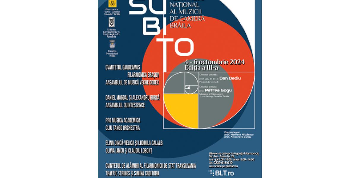 Weekend de poveste la Brăila, orașul care, iată, redevine centru național al muzicii de cameră, cu prilejul celei de a III-a ediții a Festivalului Național al Muzicii de Cameră SUBITO. Festivalul este organizat de prestigioasa Filarmonică „Lyra - George Cavadia”, Consiliul Județean Brăila, Uniunea Compozitorilor și Muzicologilor din România și Primăria Municipiului Brăila. Biletele pentru regalul muzicii de cameră de la Brăila mai pot fi achiziționate de la Agenția Filarmonicii „Lyra - George Cavadia”, Strada Ana Aslan nr. 29, sau online de pe platforma BLT.ro (https://www.blt.ro/subito-festivalul-national-al-muzicii-de-camera-braila.html). Prezentăm și astăzi formațiile și maeștrii muzicii de cameră care vor evolua în cadrul Festivalului SUBITO, pe scena Casei Tineretului și la sediul filarmonicii brăilene.