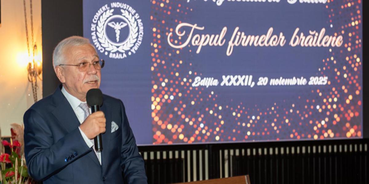 Pe 20 noiembrie, Somptuosul „Regal Events Ballroom”, din B-dul Independenței nr. 282, a fost gazda celei de-a XXXII-a ediții a Galei Excelenței în Afaceri - Topul Firmelor din Județul Brăila, organizată de Camera de Comerț, Industrie și Agricultură (CCIA) Brăila - un eveniment de referință care celebrează performanța și poziția de top a companiilor brăilene în mediul de afaceri din România.
