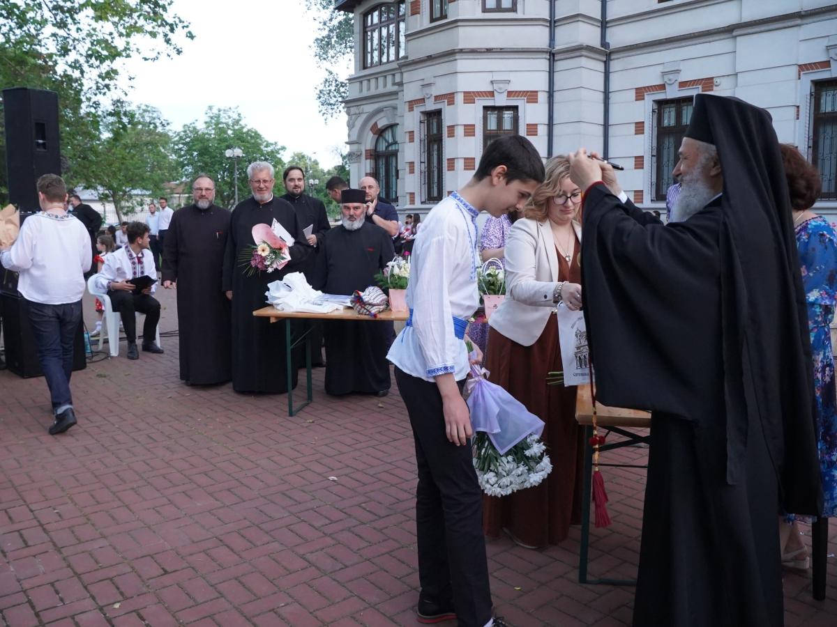 La final, a avut loc mult-așteptata festivitate de premiere în cadrul căreia ierarhul Dunării de Jos le-a oferit elevilor cuvenitele diplome și premii, ca răsplată pentru efortul depus în cursul anului școlar 2022-2023, binecuvântându-i și felicitându-i atât pe ei, cât și pe profesorii și pe părinții lor, prezenți la eveniment.
