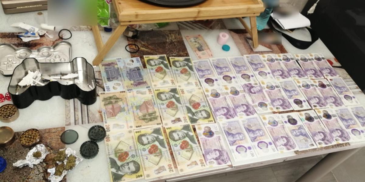 * cele două brăilence, de 21 respectiv 22 de ani, aveau acasă grindere pentru măcinarea stupefiantelor, droguri, importante sume în valută - aproape 7.000 de lire sterline, în afară de euro, forinți și dolari * totodată, tinerele dețineau o armă neletală cu 86 de bile de cauciuc, precum și o sabie cu teacă * cercetările sunt continuate de polițiștii de la Crimă Organizată și de la Biroul Arme și Explozivi